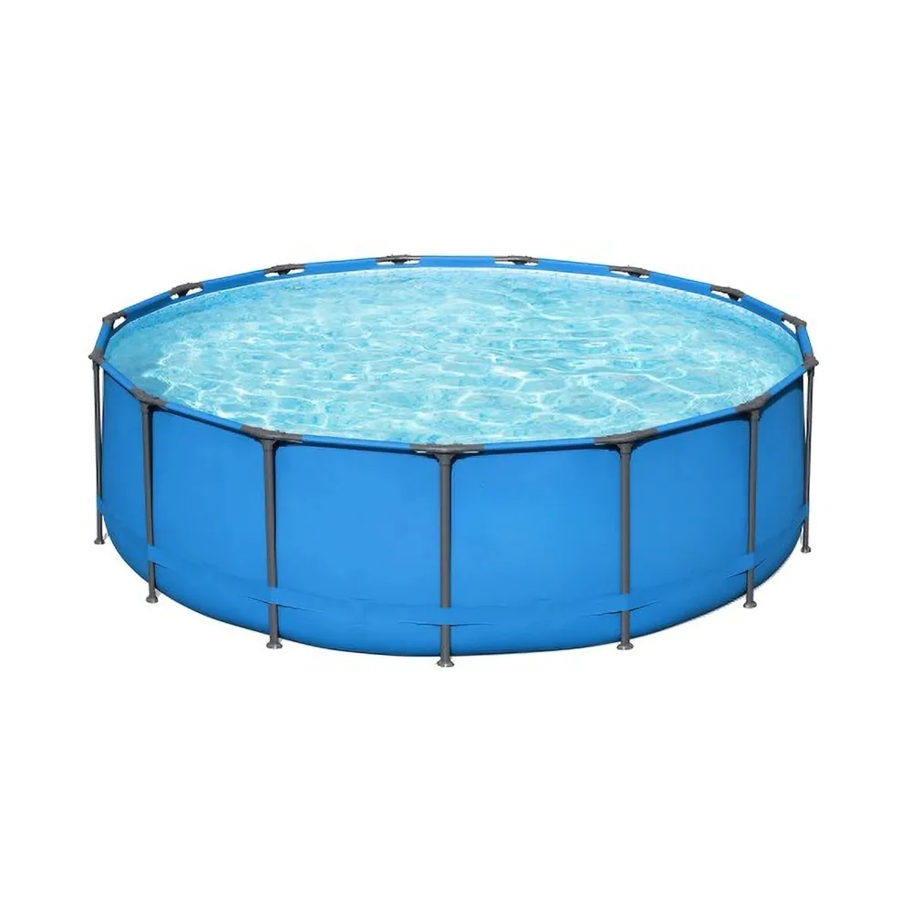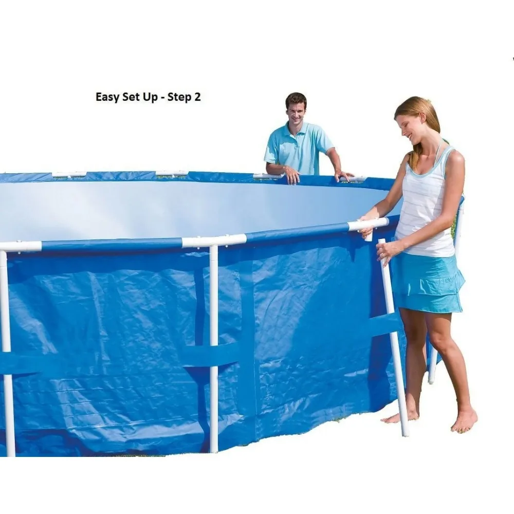 Have a blast splashing in 4,231 gallons of water with your friends and family all summer. With a simple setup and takedown process, you can easily store this pool away in the off-season. No tools are required, and a hose connects to the built-in flow control valve to quickly and efficiently drain the pool water. Spend your hot summer days in the water with the Steel Pro Above-Ground Swimming Pool.