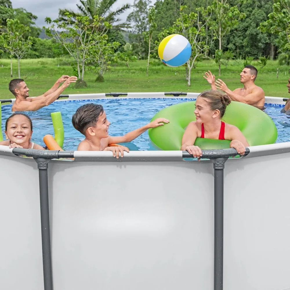 - Kids and adults of all ages will enjoy swimming and splashing all summer long in this above-ground backyard pool