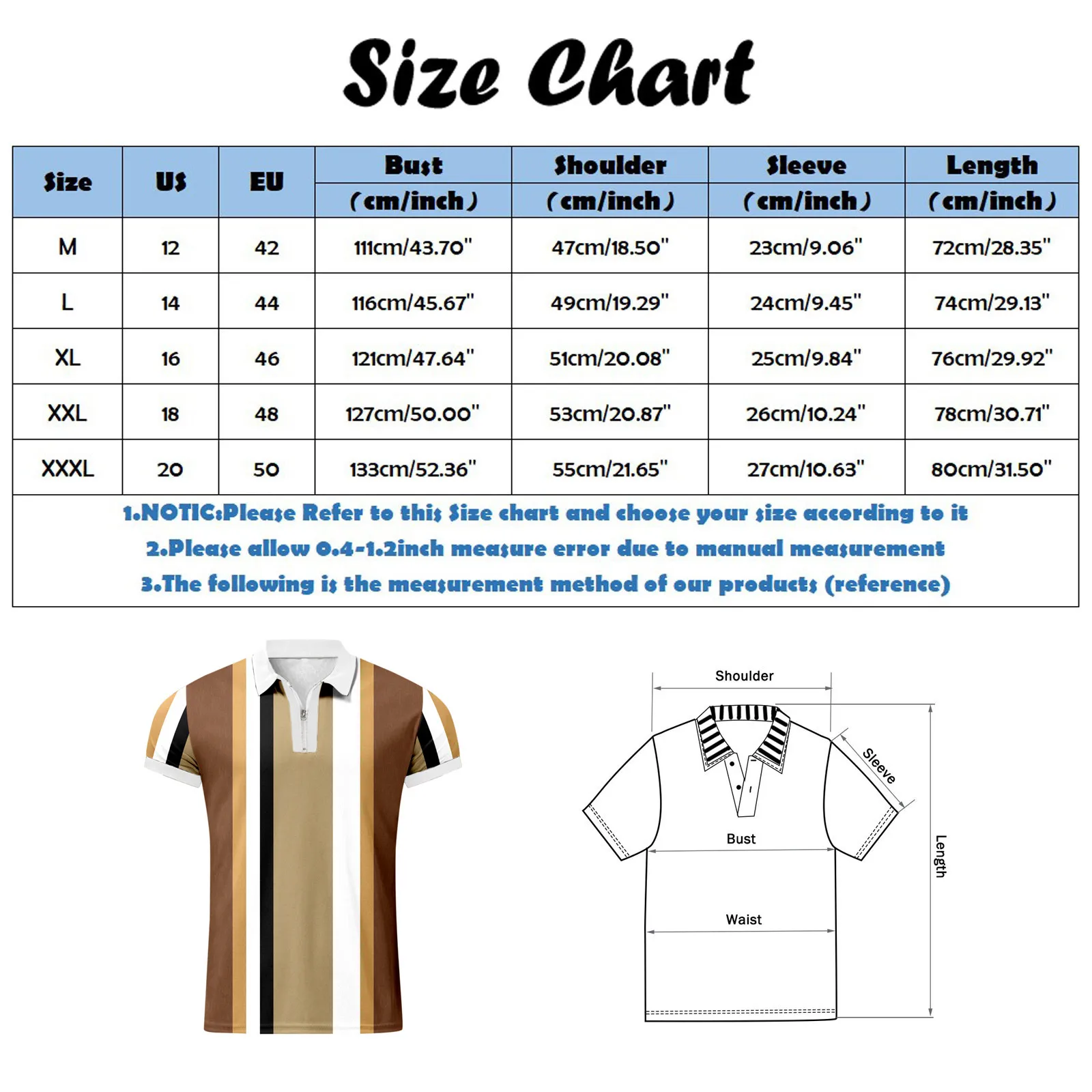 - XXXL (US: 20, EU: 50) – Bust: 133cm/52.36”, Shoulder: 55cm/21.65”, Sleeve: 27cm/10.63”, Length: 80cm/31.50”