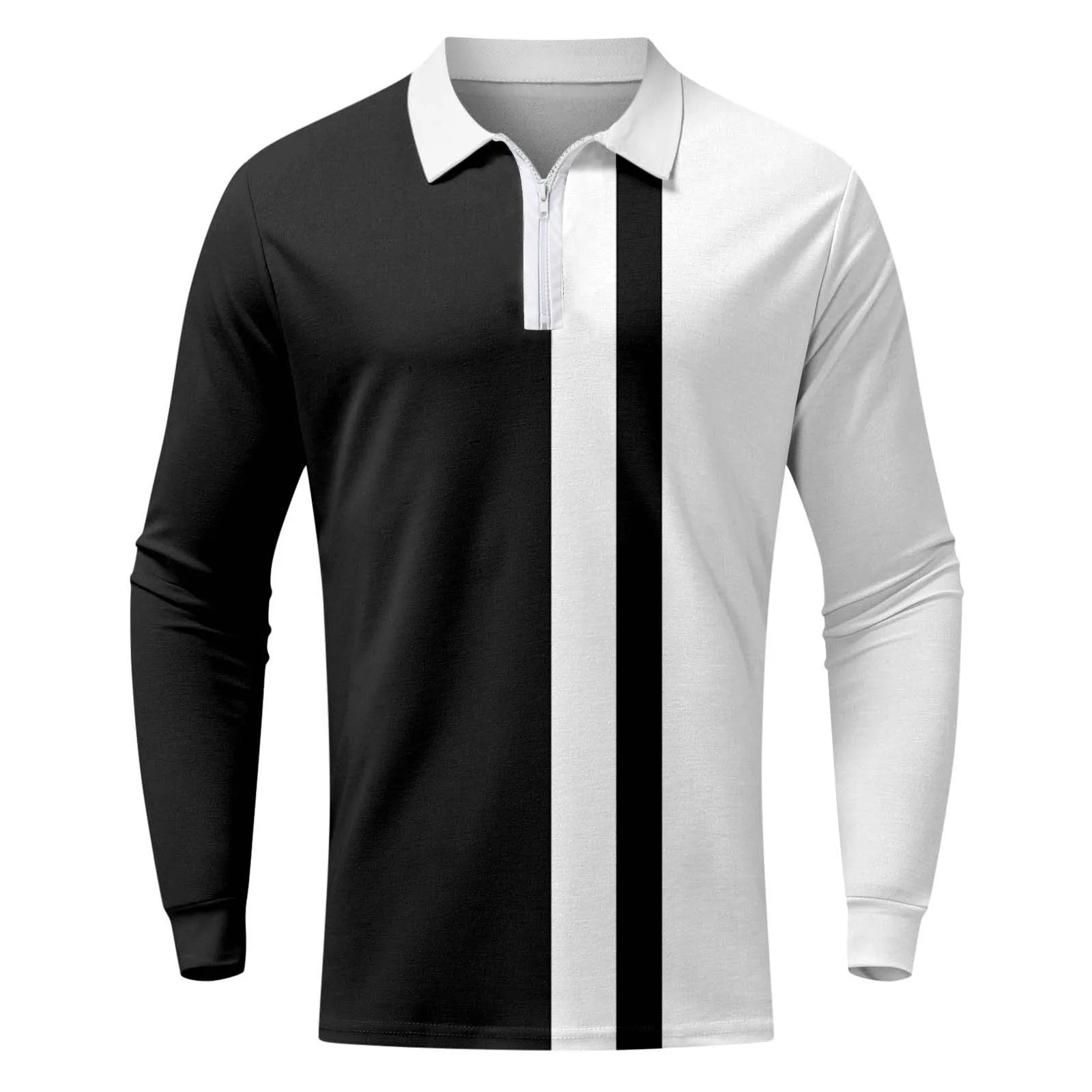 Striped Casual Men’s Polo Autumn & Spring Long Sleeve