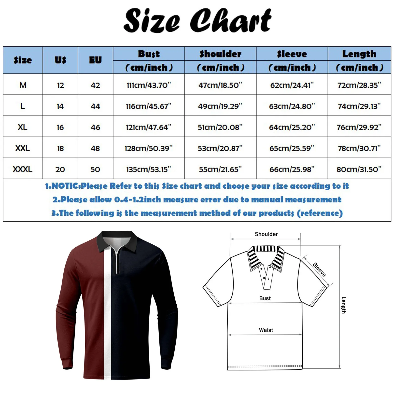 - XXL (US: 18, EU: 48) – Bust: 128cm/50.39”, Shoulder: 53cm/20.87”, Sleeve: 65cm/25.59”, Length: 78cm/30.71”