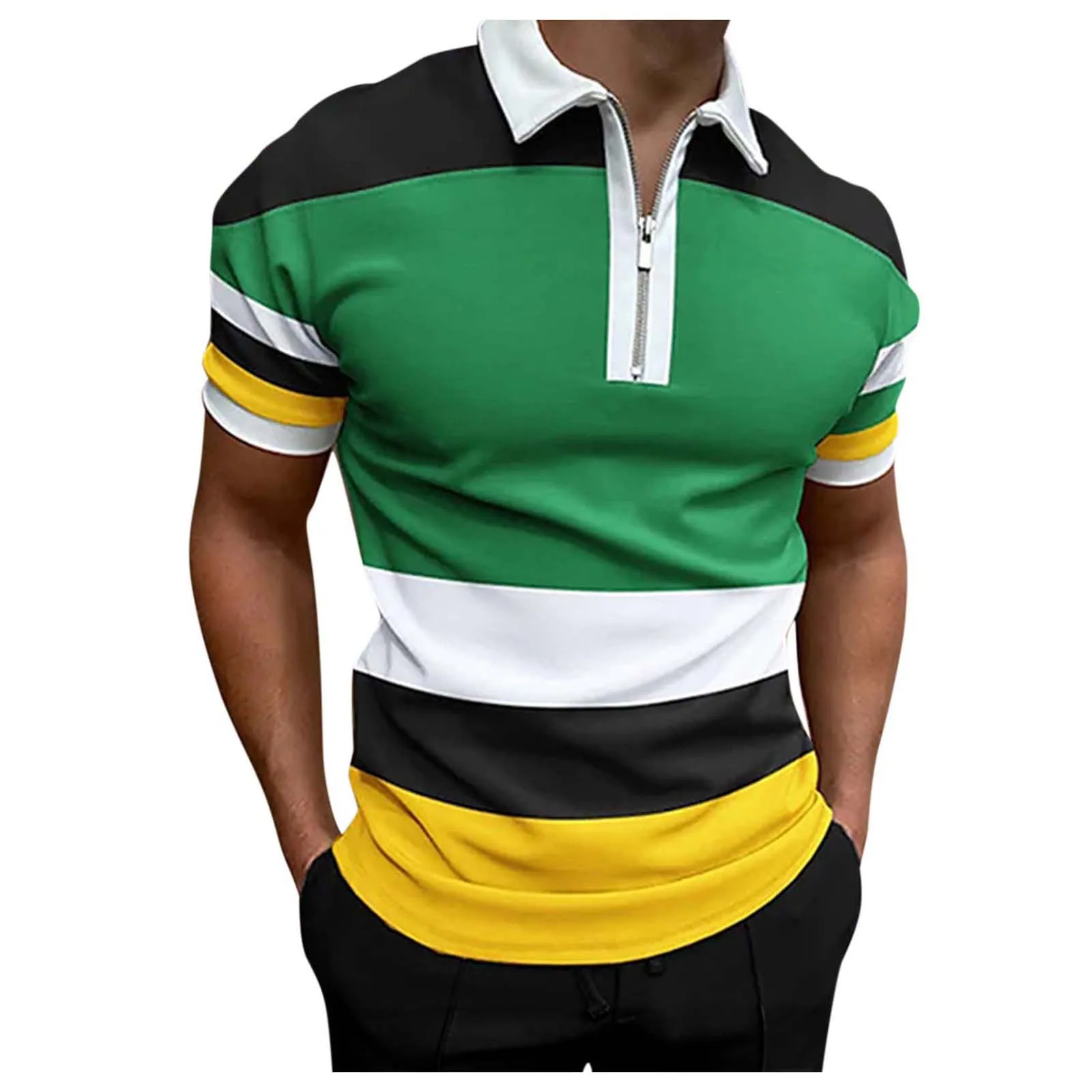 Stylish Men’s Splicing Print Zipper Collar Tee