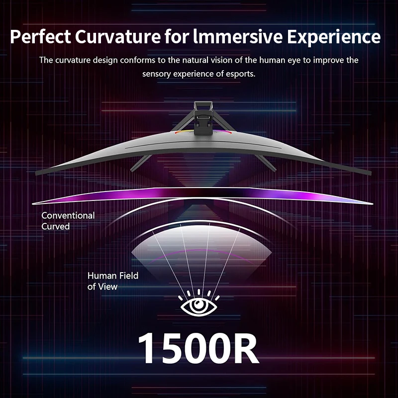 • Curved 1500R Display for True Immersion: The curved screen design enhances your field of vision, creating an ultra-immersive gaming and viewing experience.