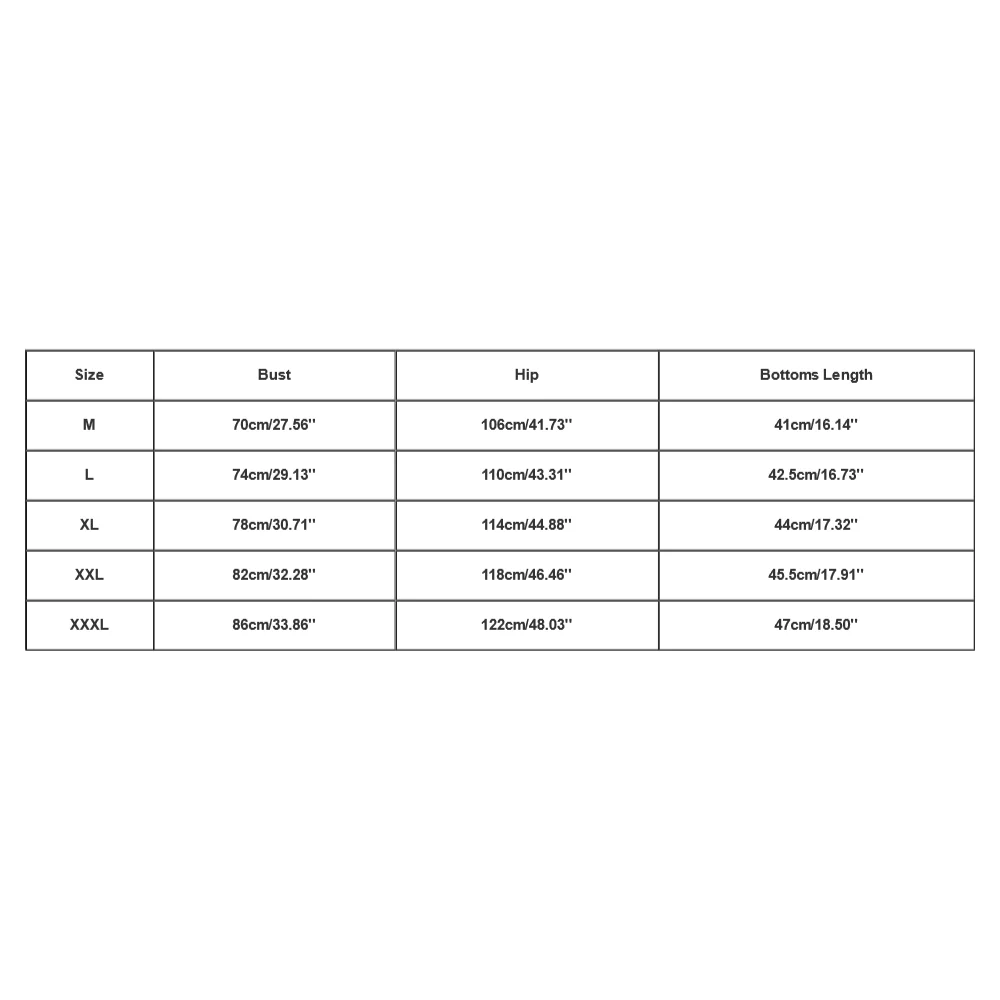 - XXXL: Bust: 86cm/33.86″, Hip: 122cm/48.03″, Bottoms Length: 47cm/18.50″