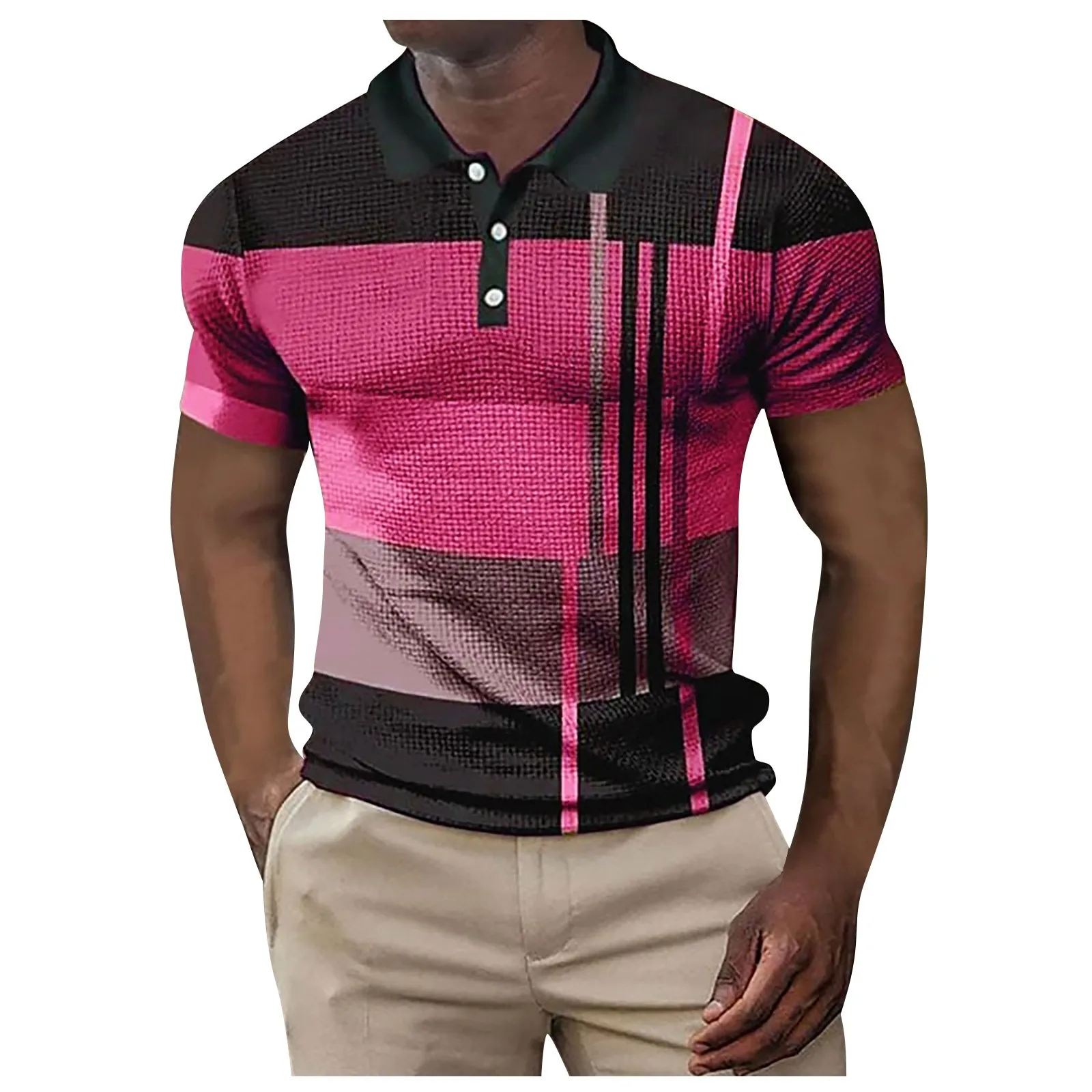 Summer Polo Shirts Plaid Lapel
