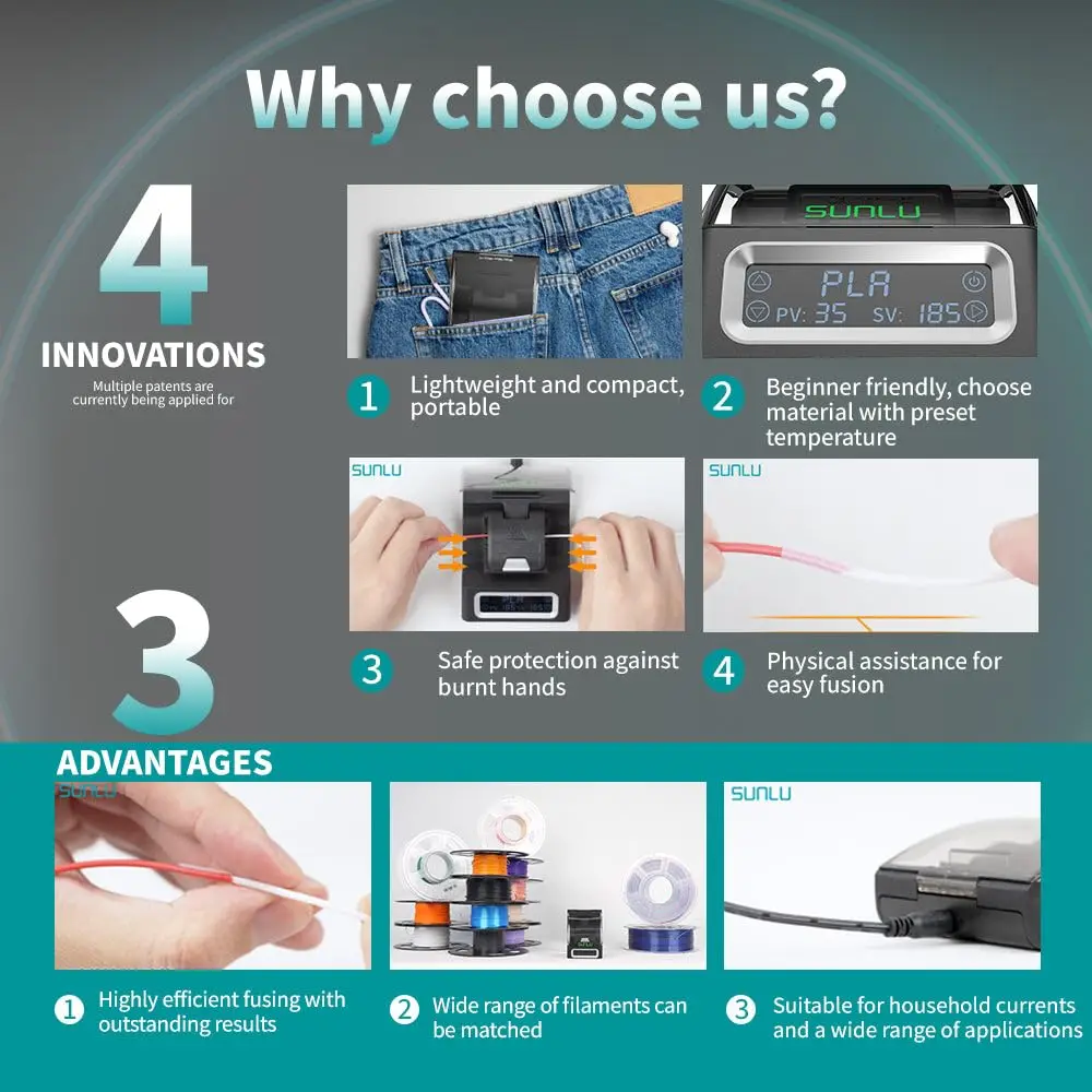 - Enhanced Printing Reliability & Continuity: Never let a filament run out or an unexpected break derail a long print again. By creating highly efficient fusions with outstanding results, the SUNLU Filament Connector FC01 ensures continuous material flow, preventing print failures and saving you valuable time and material.