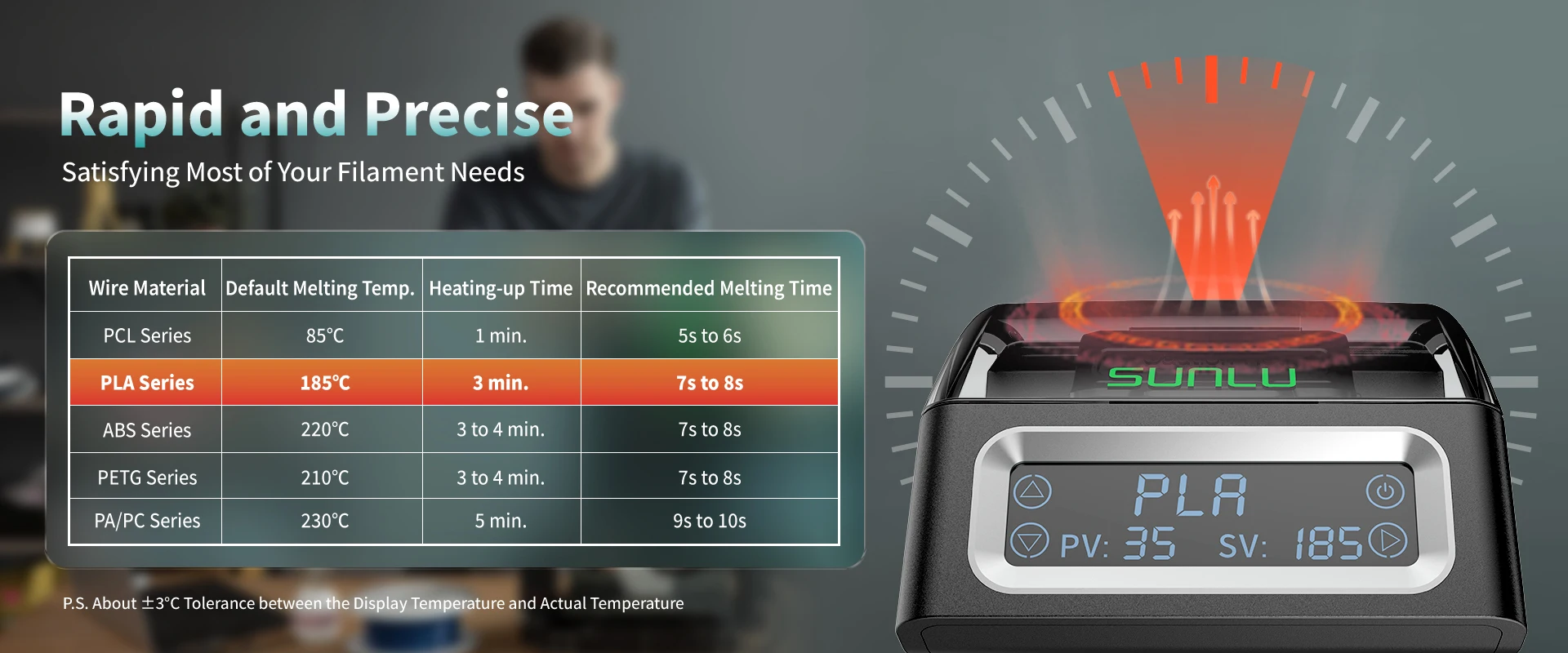 - Broad Filament Compatibility with Preset Temperatures: This versatile tool is compatible with a wide range of popular 3D printing filaments, including PLA, ABS, PETG, PCL, and PA/PC series. It features convenient preset temperatures for each material, ensuring optimal melting conditions for strong, reliable fusions.