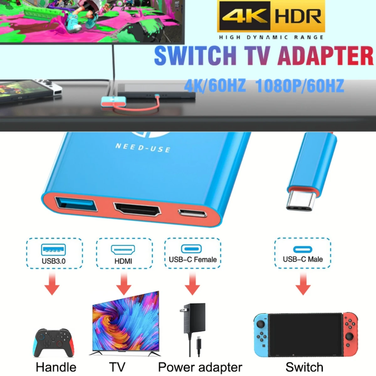 Get the most out of your favorite gaming devices and mobile gadgets with this ultra-portable 3-in-1 USB-C adapter. Built for performance and convenience, this all-in-one hub brings 4K HDMI projection, 100W fast charging, and USB data transfer into a compact, travel-ready design.