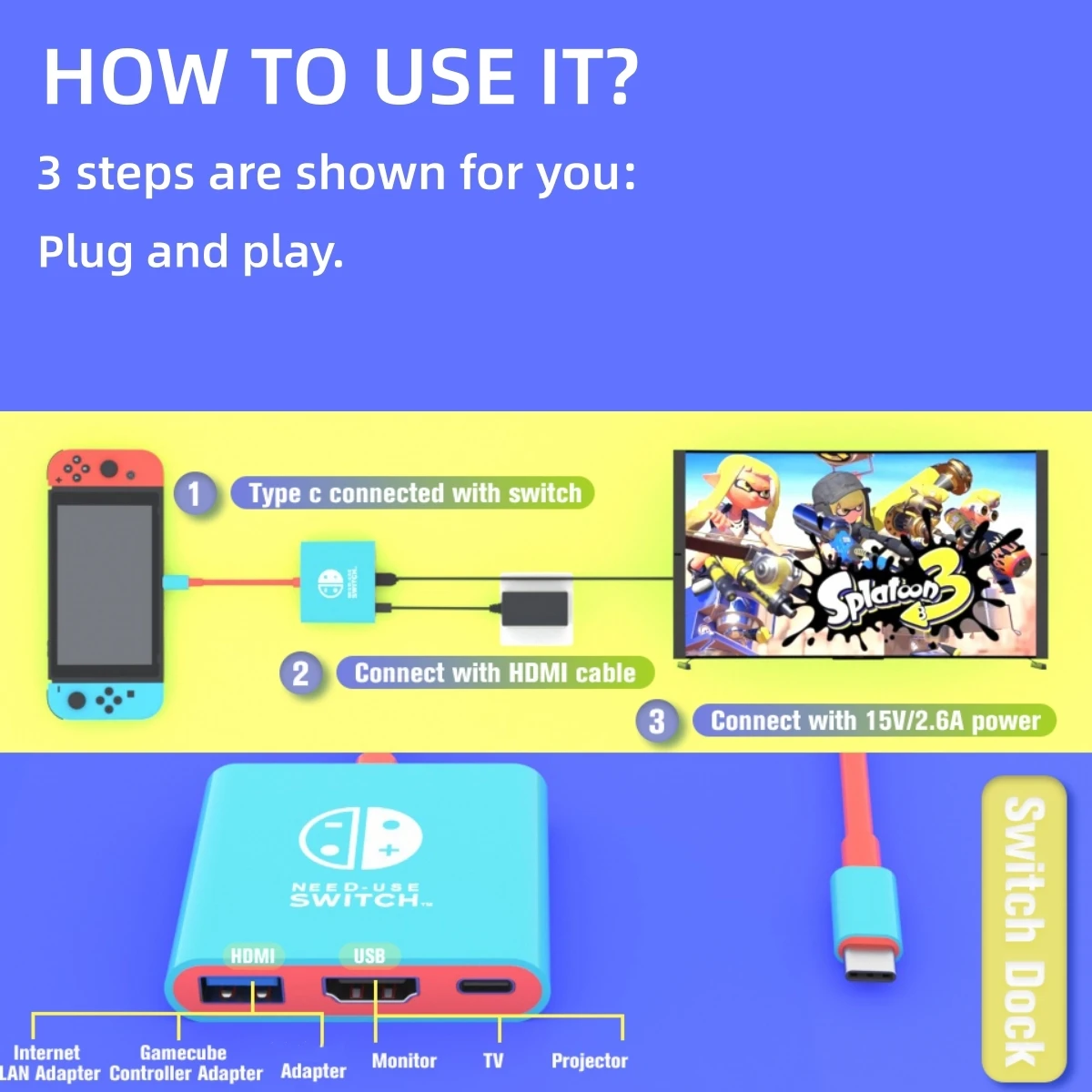 Switch OLED HDMI Dock with USB 3.0 Port Base