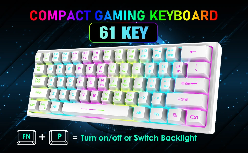 - 61-Key Compact Layout: Minimal design with full functionality for FPS, MMO, or office work.