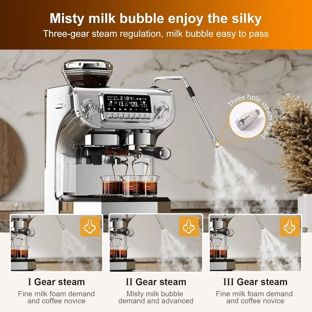 - Special Features: Built-in conical burr grinder, 15-bar pressure pump, 3-gear milk frother, PID temperature control