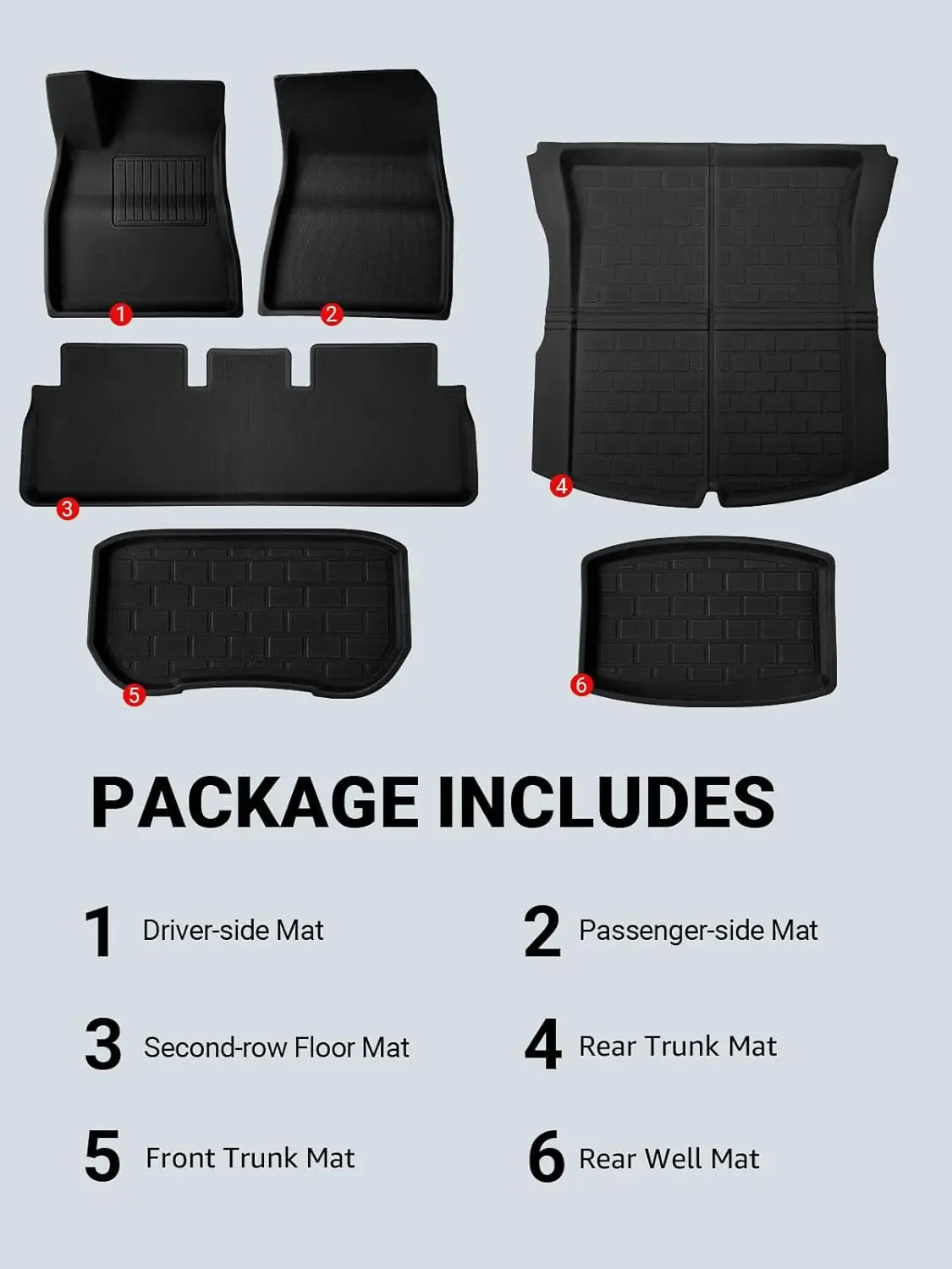Tesla Model 3 All-Weather Floor Mats 6PCS Set