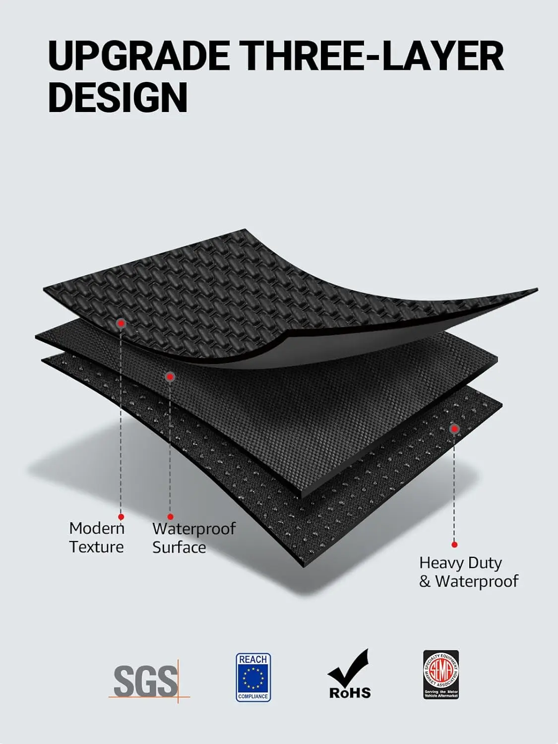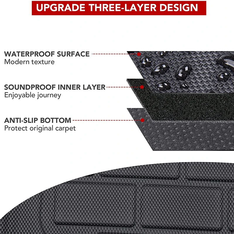 Our Tesla Model 3 floor mats are made from high-quality 3D materials. The functional triple-layer construction provides driving comfort and comprehensive protection, built to withstand daily wear and tear for long-lasting protection of your car’s interior.