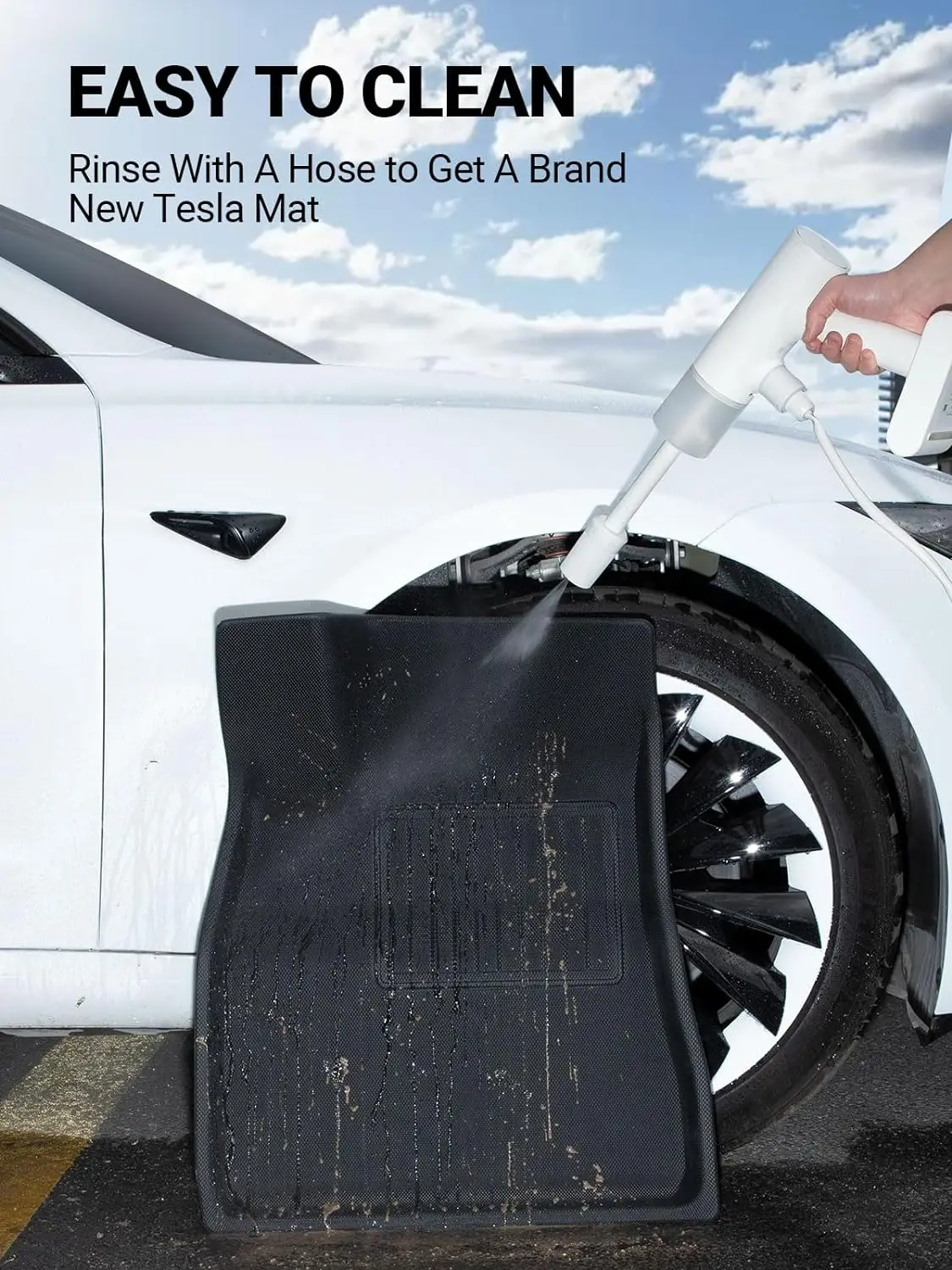 Cleaning is a breeze—simply remove the Tesla Model 3 mats, shake off dirt, and wipe clean. They are also compatible with most vacuum cleaners for added convenience.