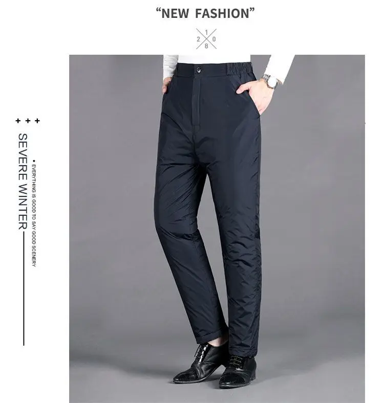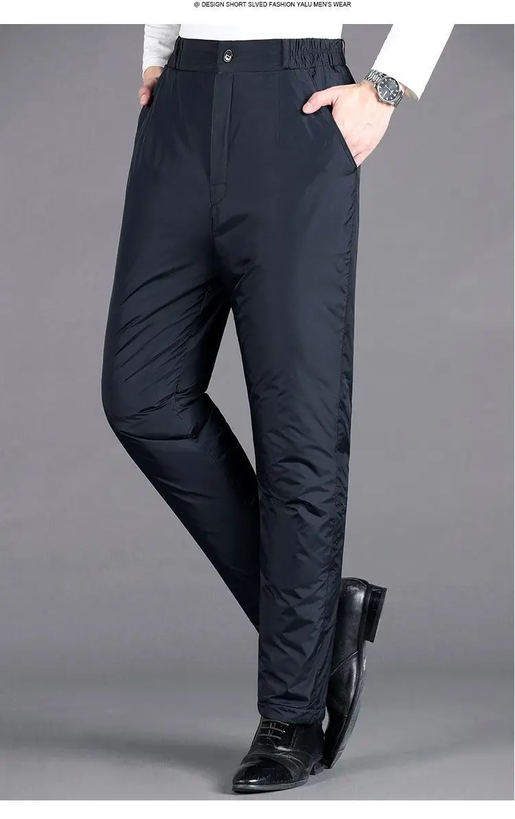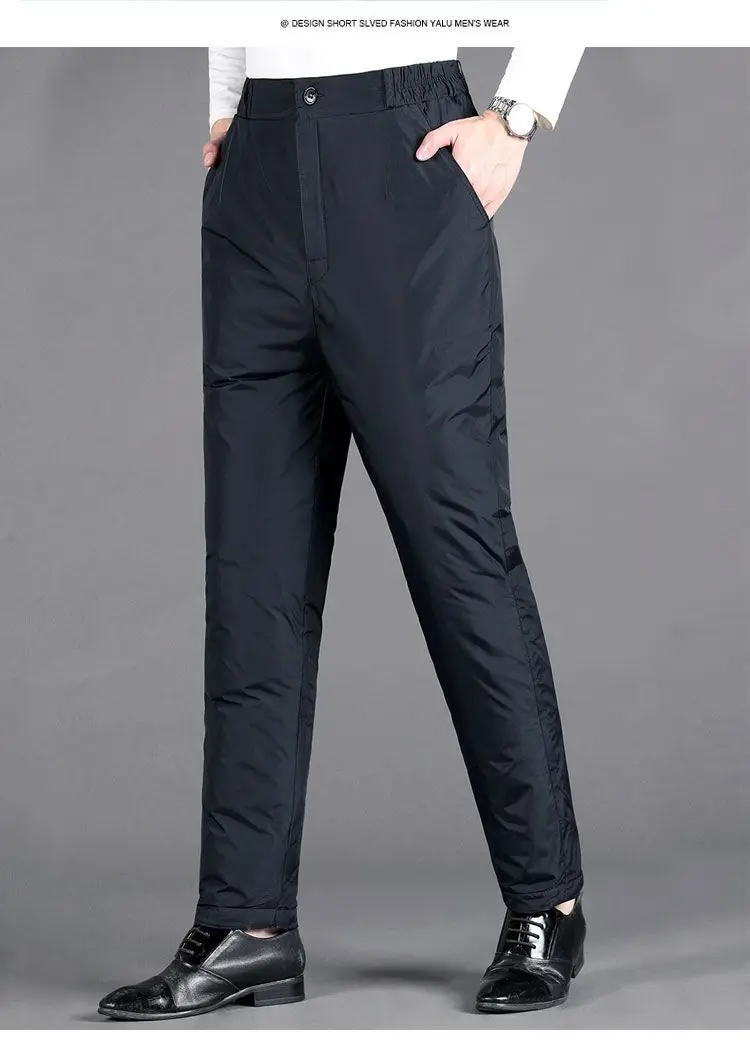 Upgrade your winter wardrobe with these thickened-down men’s trousers, designed for ultimate comfort and warmth during the colder months. These trousers combine functionality with style, making them an essential addition to your seasonal collection.