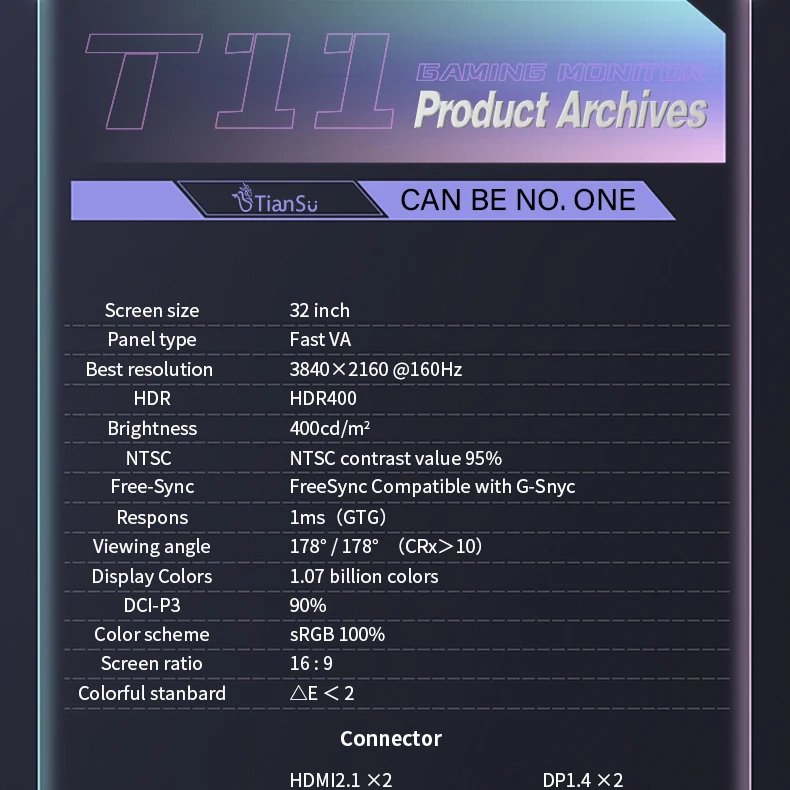Tiansu 32 Inch 4K 144Hz Gaming Monitor
