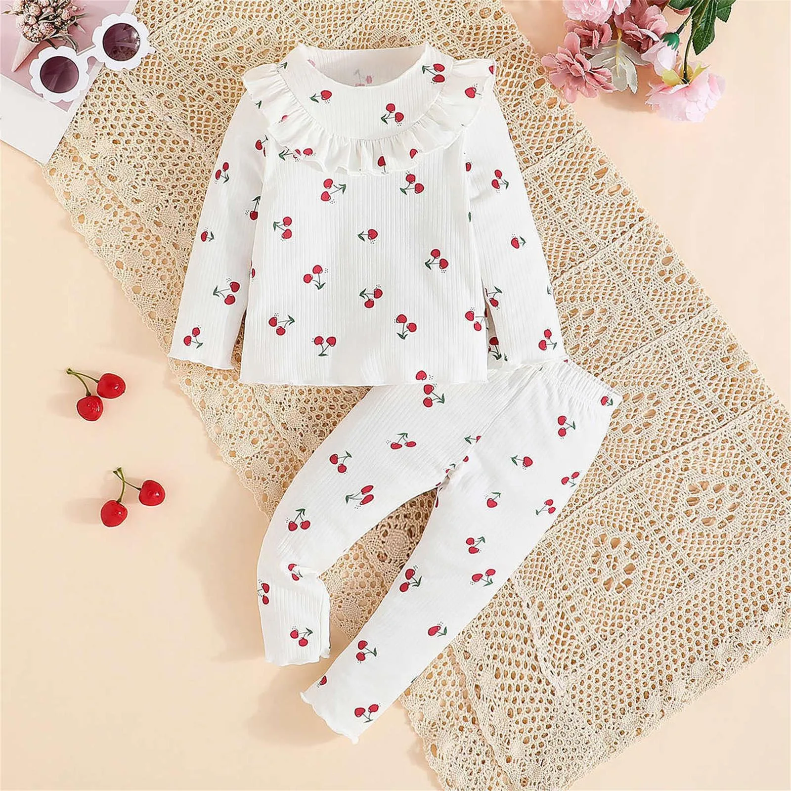 Toddler Girls Cherry Print Sweat Suit Set