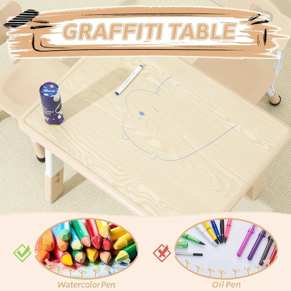 Toddler Table Set with 2 Chairs, Adjustable Height
