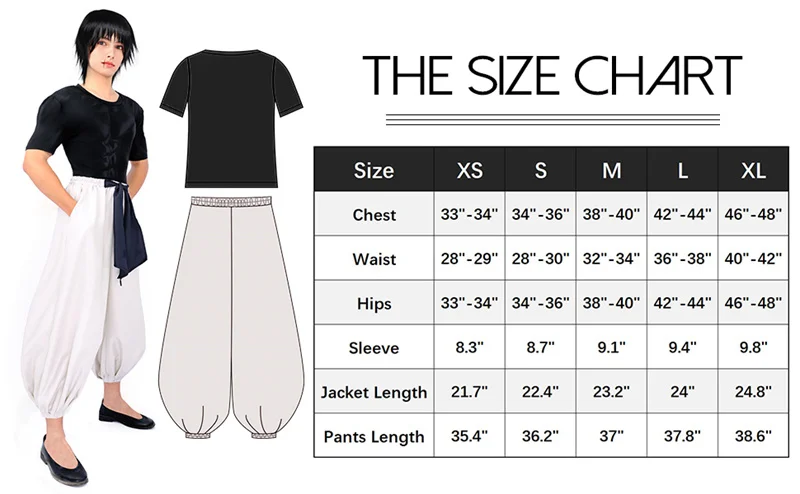 - Package Includes: Toji Fushiguro top and wide-leg pants.