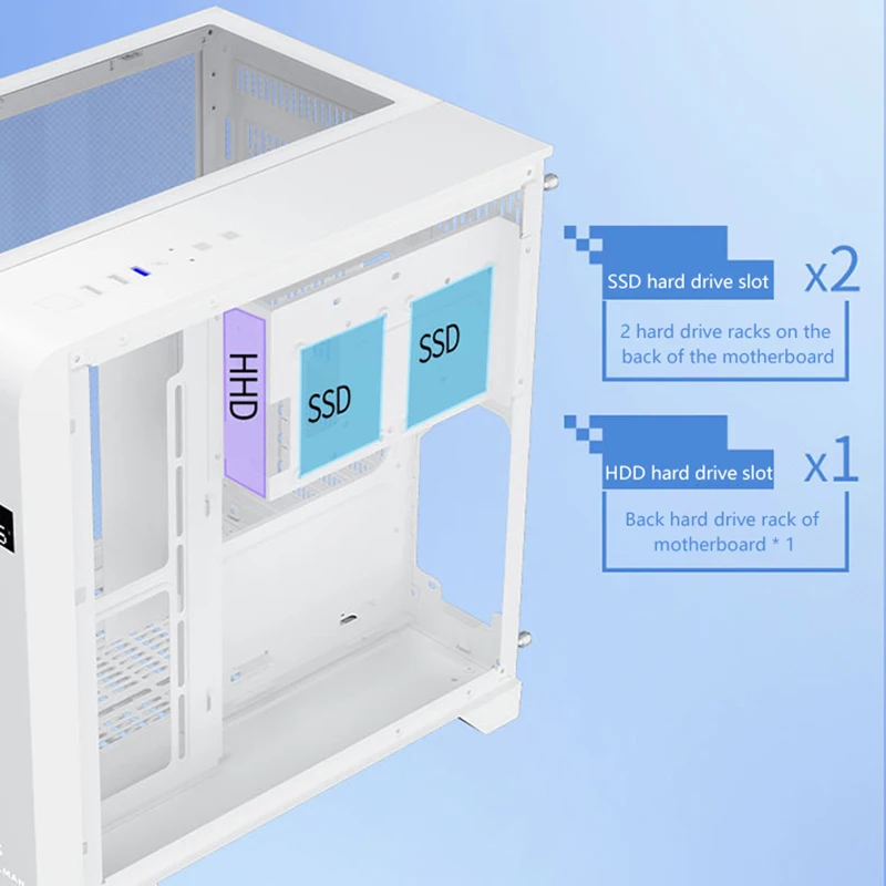 - Strong compatibility: This computer chassis design has enough space to be compatible with various motherboards and graphics cards, greatly enhancing its practicality.