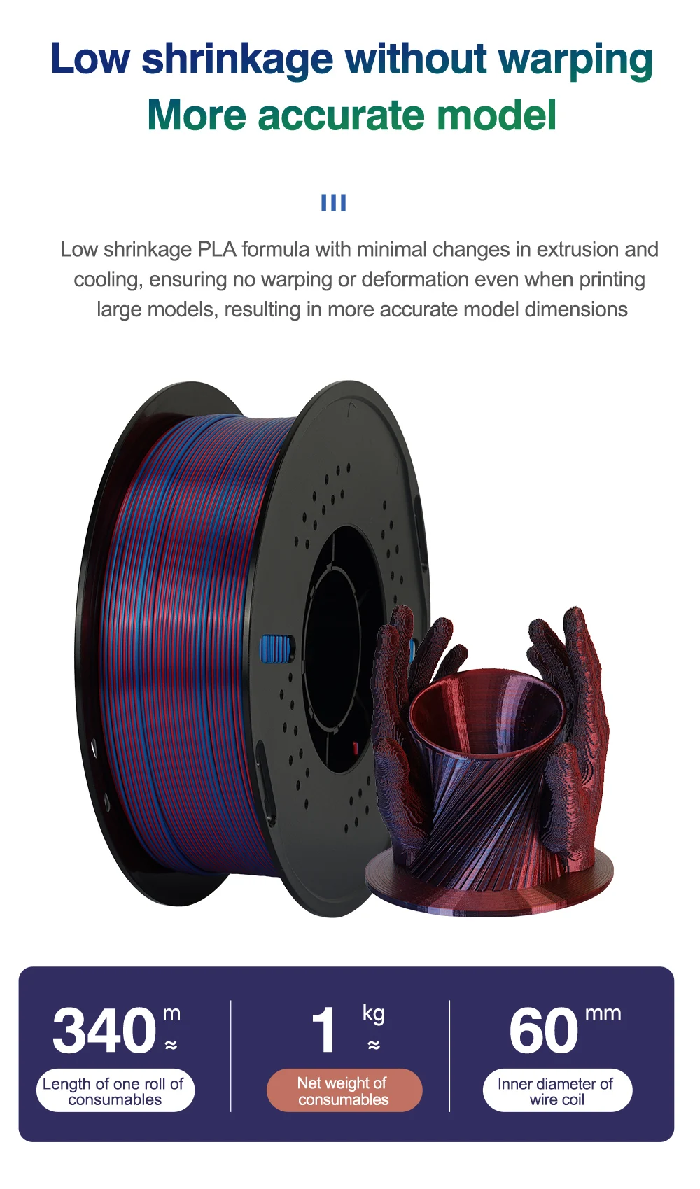 Unleash Dazzling Creations: Experience PLA Silk Dual/Tri Color Filament for Stunning 3D Prints!