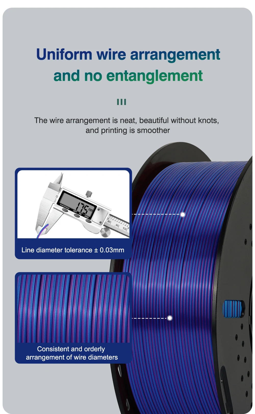 - Exceptional Reliability & Consistency: Print with confidence knowing our filament features a uniform wire arrangement that is neat, beautiful, and completely free of tangles and knots. A precise line diameter tolerance of ±0.03mm guarantees consistent feeding and smoother, more reliable printing every time.