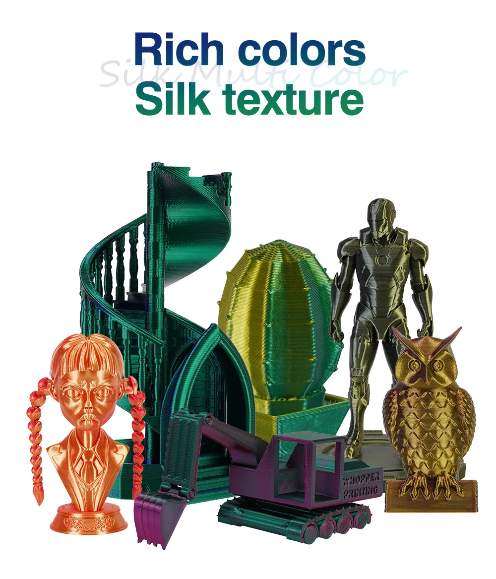 - Mesmerizing Dual & Tri-Color Silk Texture: Transform your models with a rich, lustrous silk finish that shimmers and shifts between two or even three distinct colors (e.g., green/gold, blue/purple, red/copper) depending on the viewing angle. Create truly unique and visually stunning objects that stand out.