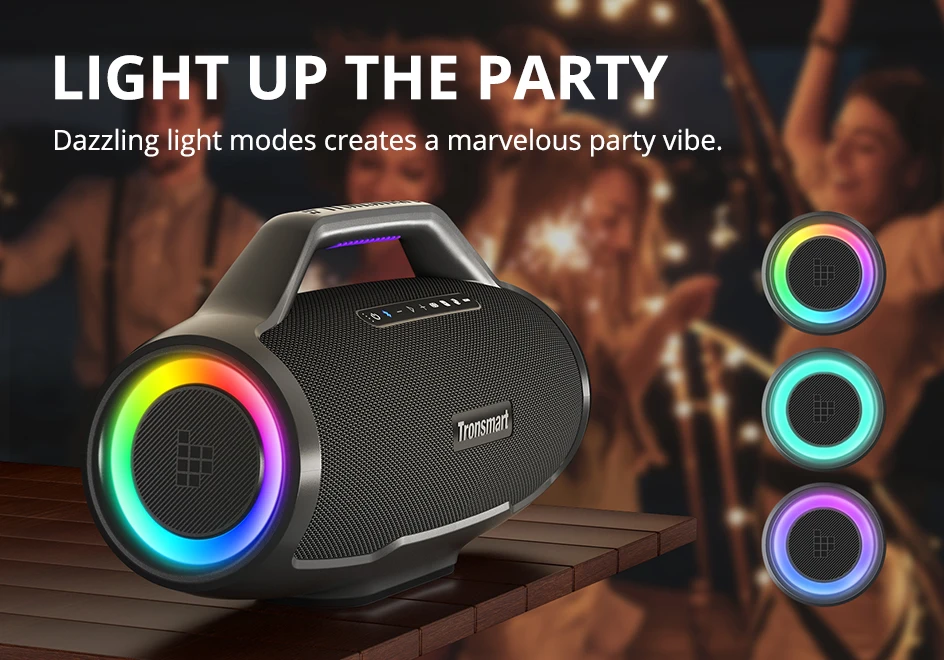 Personalize EQ modes, choose your light show, select the next song, and control TuneConn via the Tronsmart App.