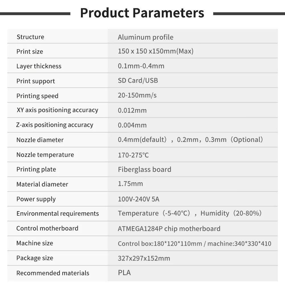 | Nozzle Diameter | 0.4mm |
