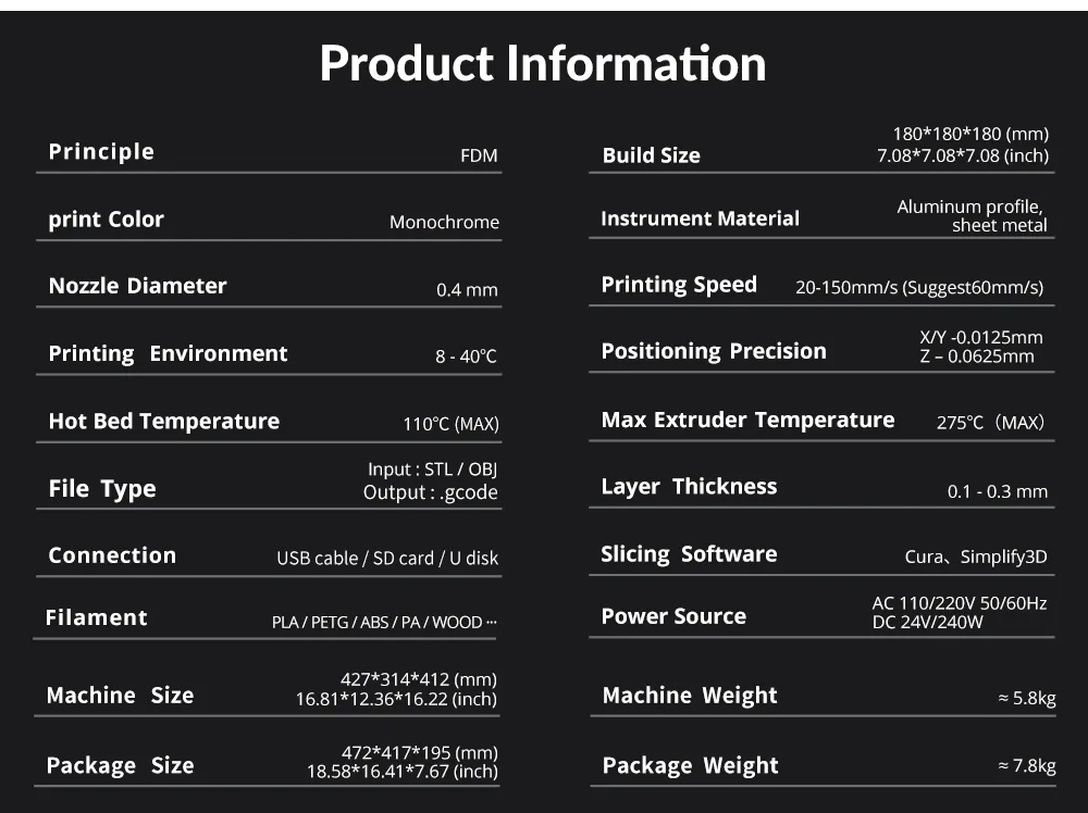 | Printing Speed | 100mm/s |