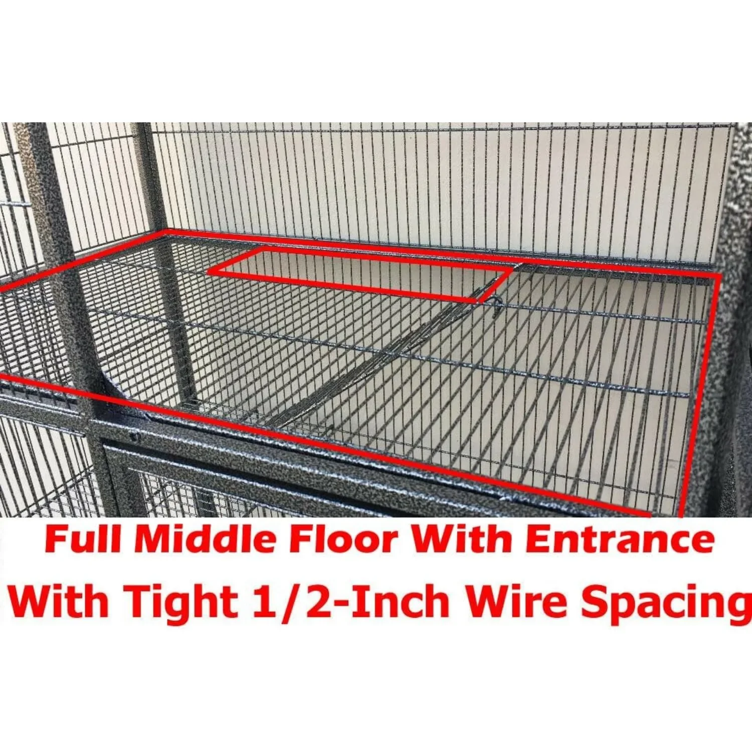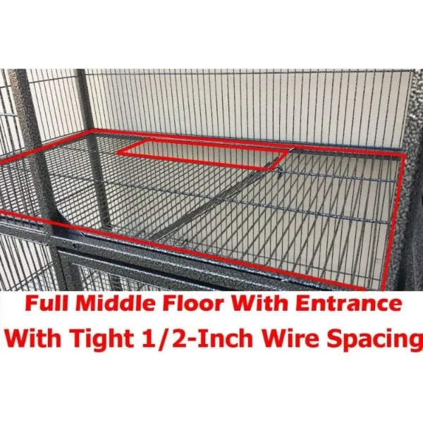 - Two-story, Double Unit, 4-Level Durable Cage – Full middle floor with 1/2-inch wire spacing. Includes ladder access between floors. Durable Wrought Iron Construction – Easy to assemble.