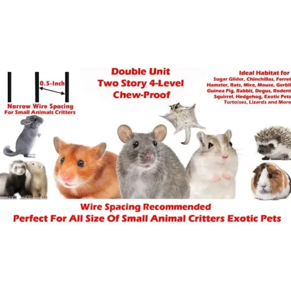 Two Full Story Double Unit 4-Tier Chew Proof Small Animal Cage