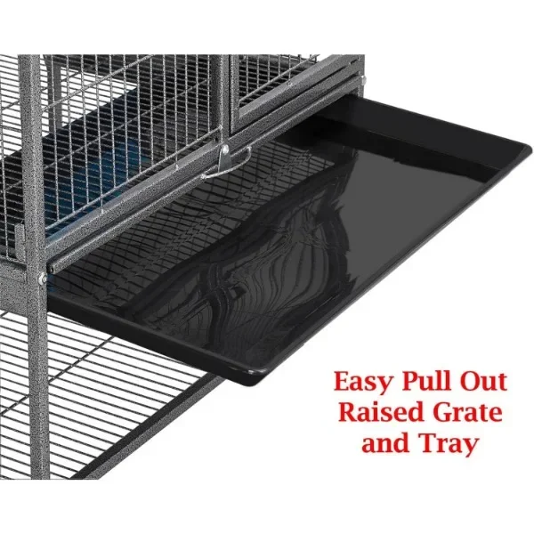 - Extra Large, Two Tiers, Spacious and Durable Cage – Durable wrought iron construction, easy to assemble.