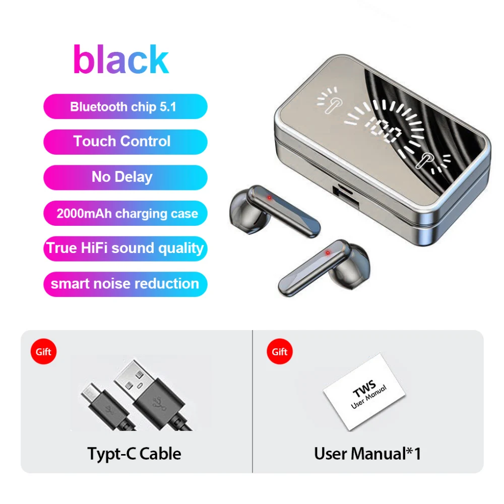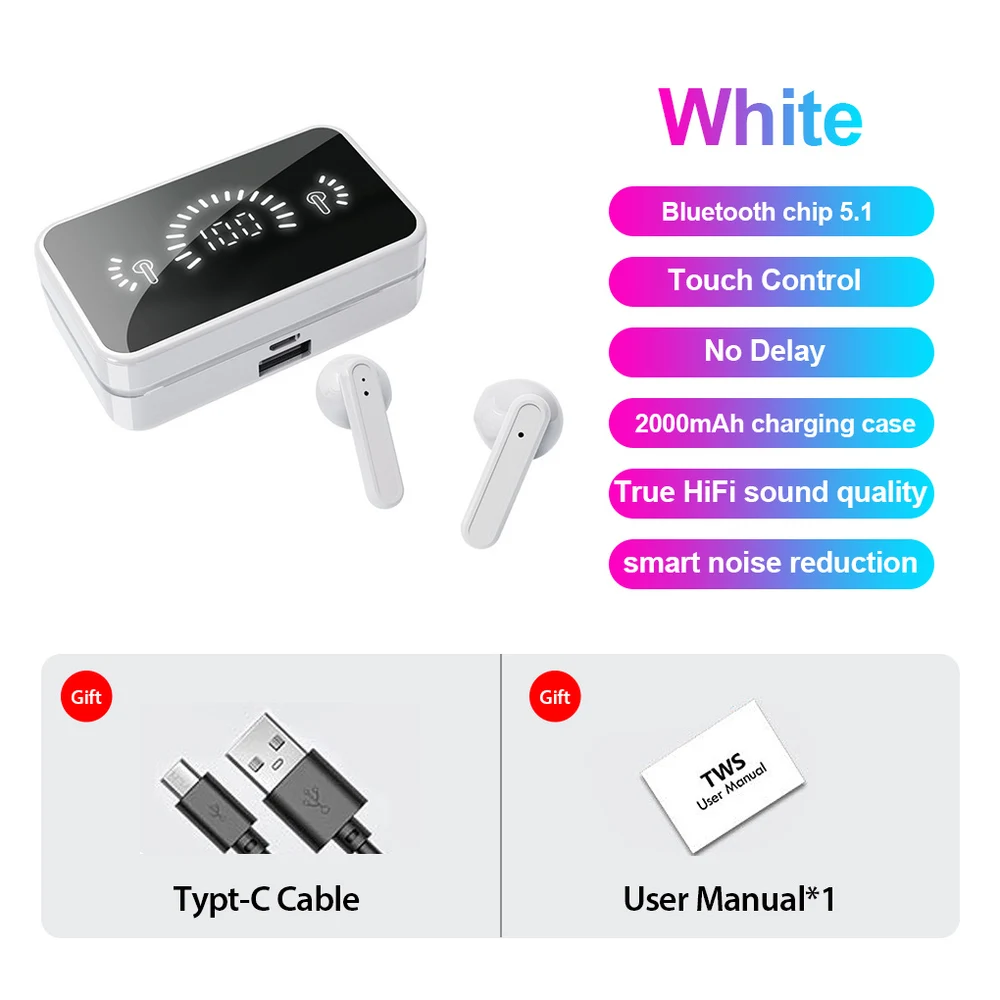 Description: Wireless Connectivity: Equipped with Bluetooth V5.1 technology, these earphones offer a stable connection and efficient transmission up to a distance of approximately 20 meters. Enjoy high-quality music seamlessly.