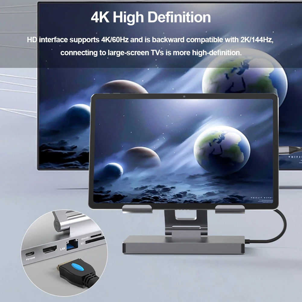- HD Resolution: Enjoy high-quality visuals with support for up to 4K 60 Hz high-definition video output. The mobile bracket hub ensures clear and vibrant displays for an immersive viewing experience.