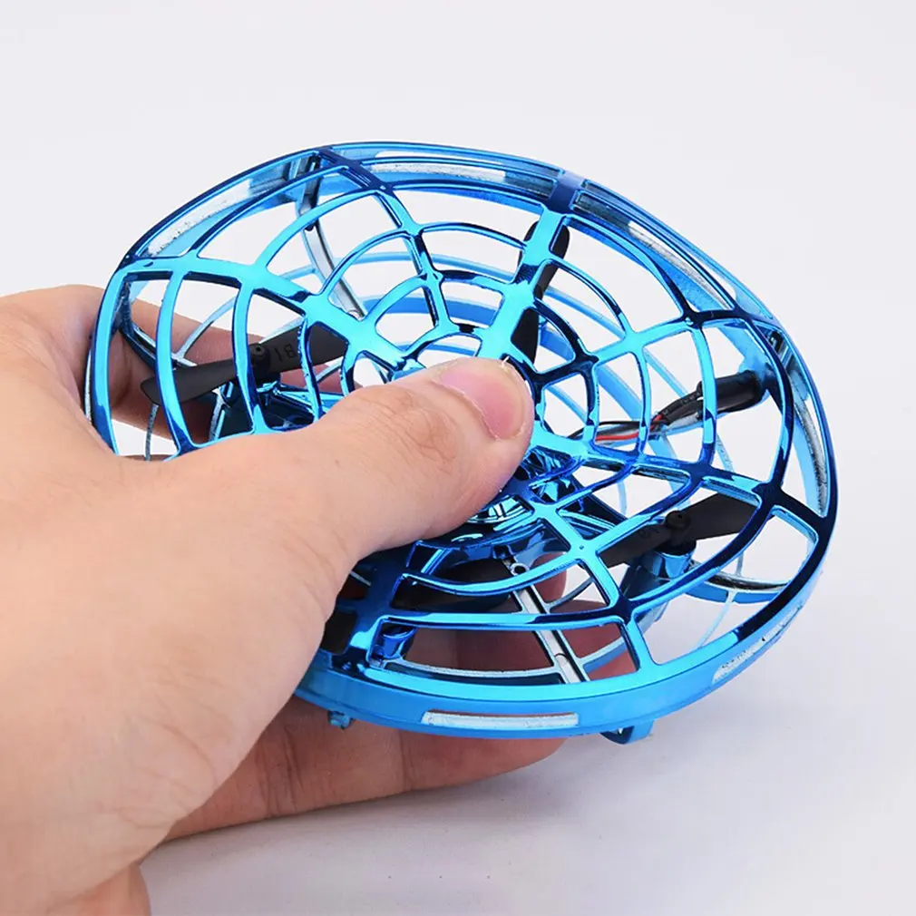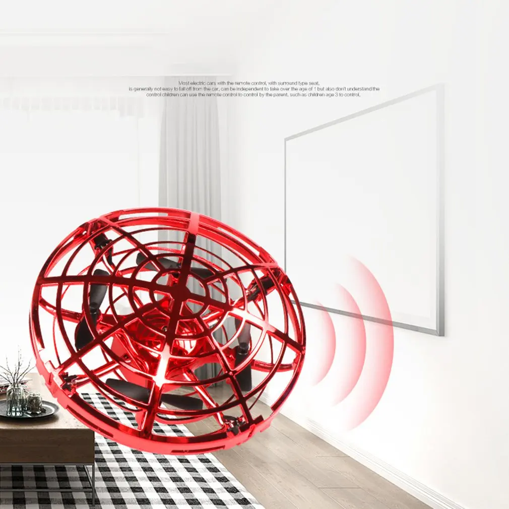 Automatic Obstacle Sensing: This flying vehicle, resembling a flying saucer, is equipped with automatic obstacle sensing. It can be launched with a simple hand throw and allows for hand-induced interactive flight.