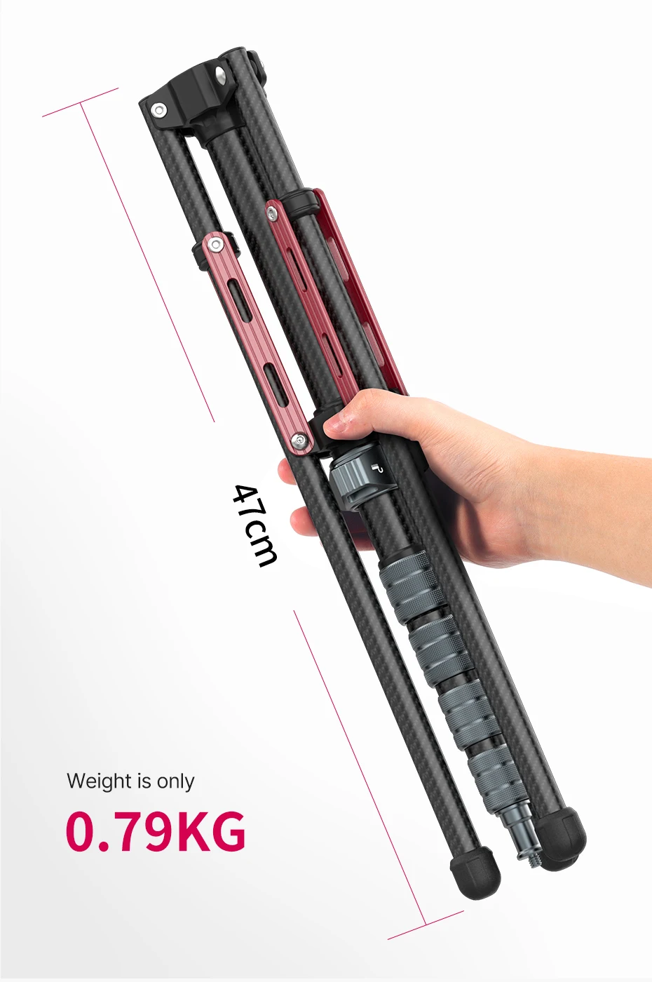 Carbon fiber construction with a reverse-folding design reduces the load for outdoor shooting.