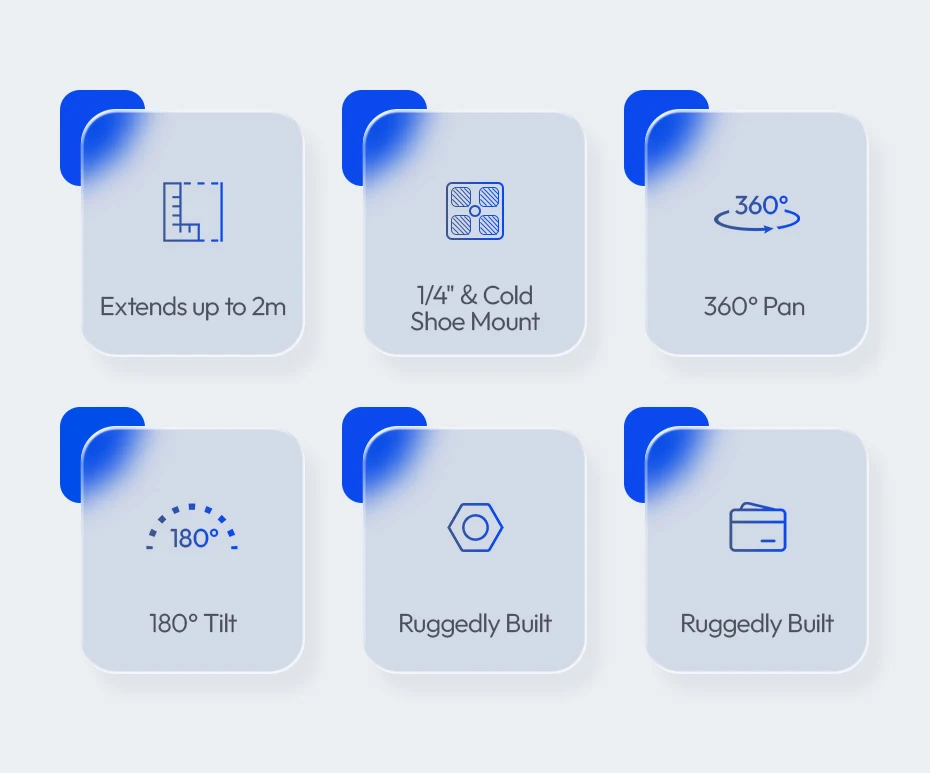 - Extends up to 2 meters: The 8-section telescopic pole offers precise height control from 38.5 cm to 208 cm for lighting, overhead angles, or eye-level shots.