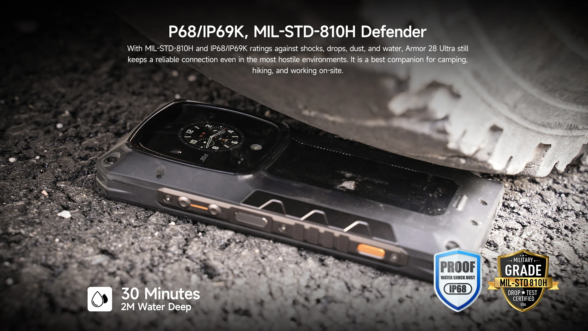 The Ulefone Armor 28 Ultra is a rugged 5G smartphone built for demanding use, outdoor work, travel, photography, and high-performance mobile gaming. It combines a durable IP68, IP69K, and MIL-STD-810H-rated body with flagship-level hardware, a large AMOLED display, an advanced camera system, fast charging support, and a massive equivalent 10600mAh battery for long-lasting daily performance.
