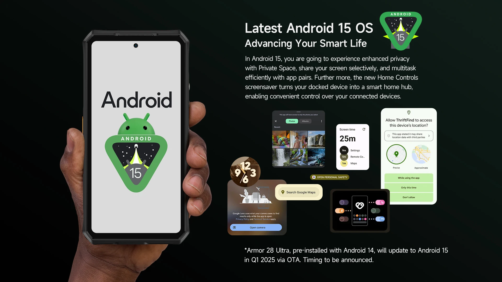 The Armor 28 Ultra supports dual 5G connectivity, Wi-Fi 7, and a uSmart expansion connector for compatible accessories such as select endoscopes and microscopes. It is built for users who want advanced connectivity options in a rugged smartphone platform.