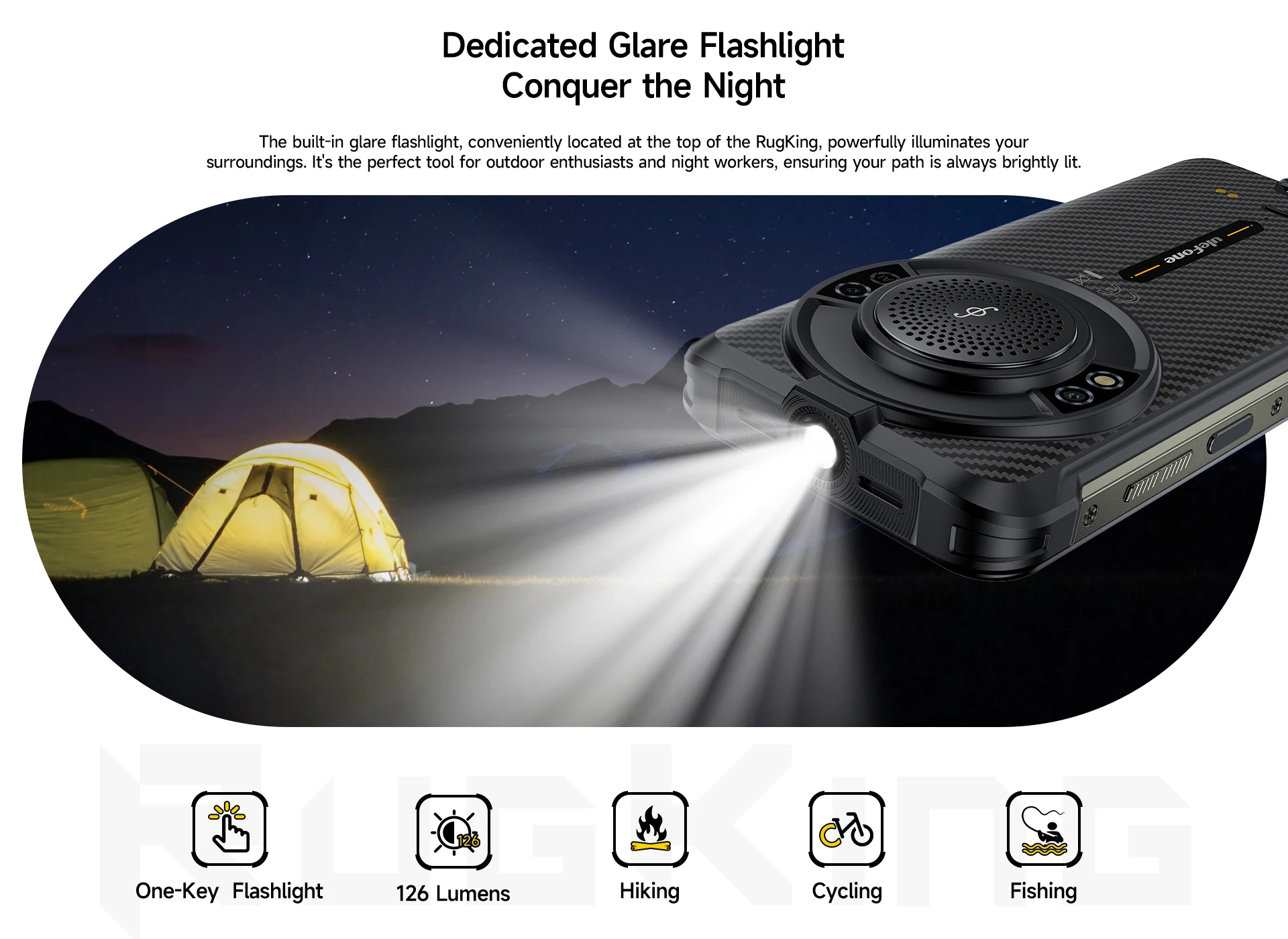 This phone also includes AI recording summary features for easier note-taking, call transcription, and quick review of important conversations. The 50MP main camera uses a Samsung ISOCELL JN1 sensor with an f/1.75 aperture to help capture detailed images with better low-light performance and more natural color. With 8GB of RAM plus up to 8GB of dynamic memory expansion, 256GB of internal storage, and support for up to 2TB of expandable storage, the RugKing is designed to handle multitasking and large files with ease.