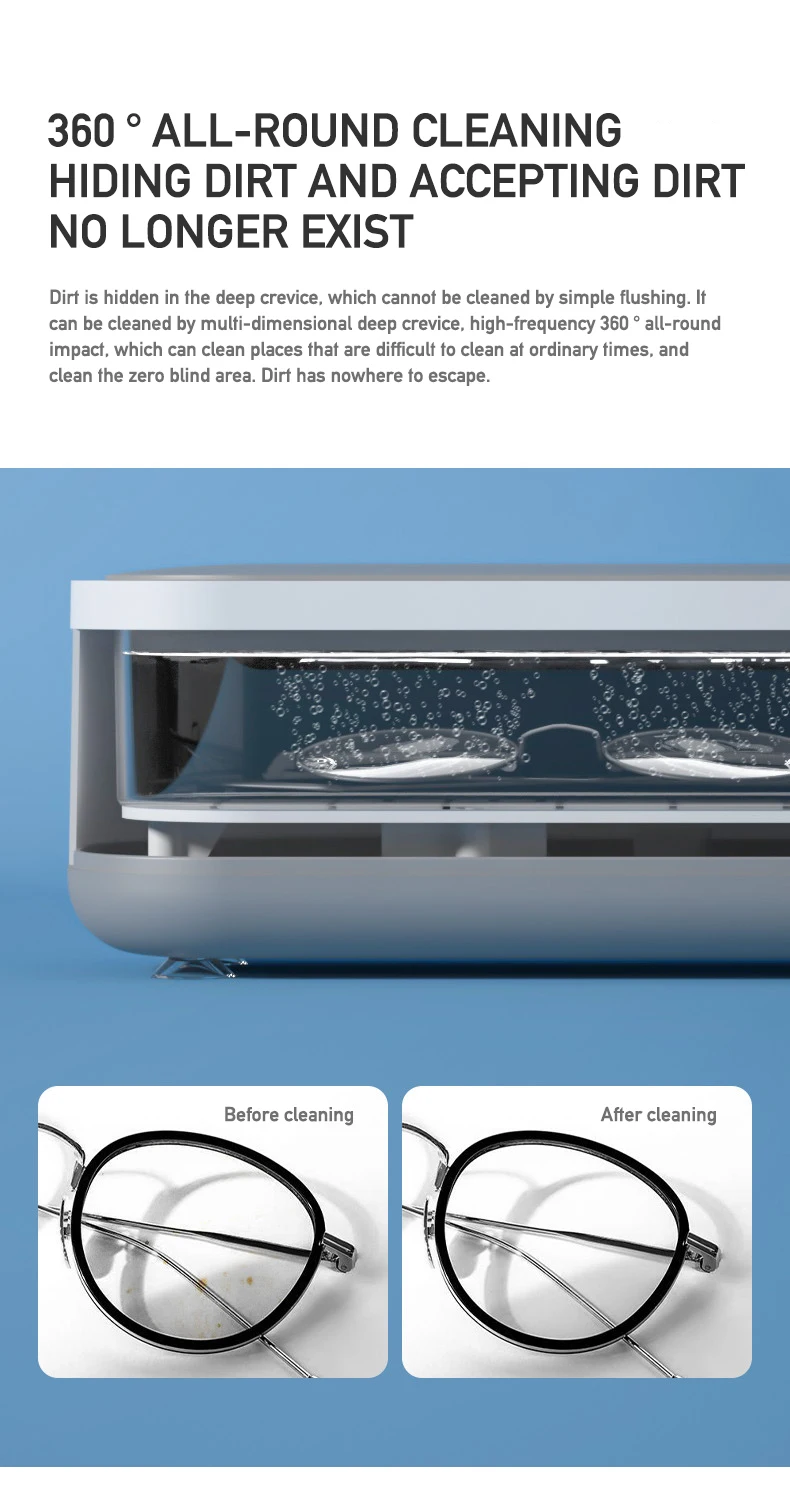 - Use cases: deep cleaning of glasses, accessories, and small tools