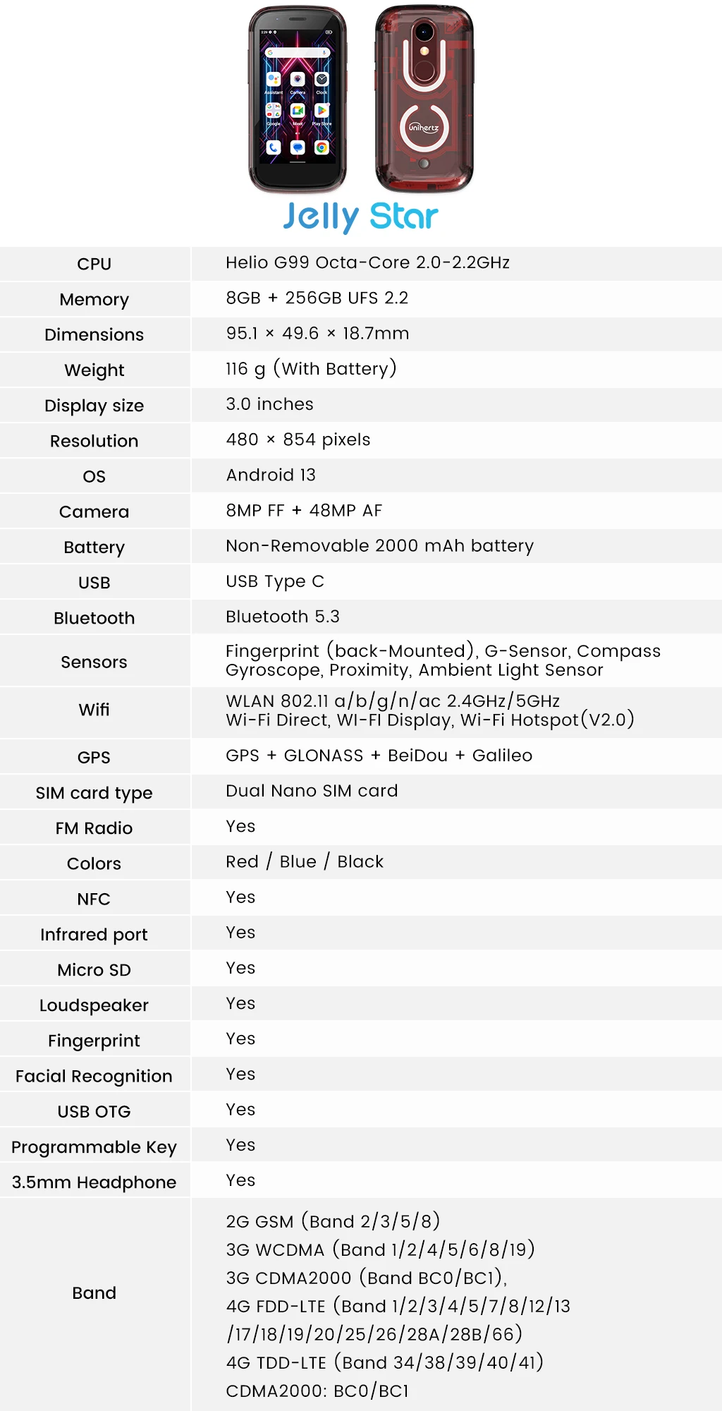 Powered by Android 13, this mini smartphone is a strong choice for users who want something unique, portable, and functional. With global LTE support, a transparent design, and practical everyday features, Jelly Star delivers a distinctive smartphone experience in a very small size.