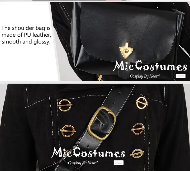 - The costume includes an eyepatch, necklace, outfit, gloves, pants, socks, and shoulder bag.