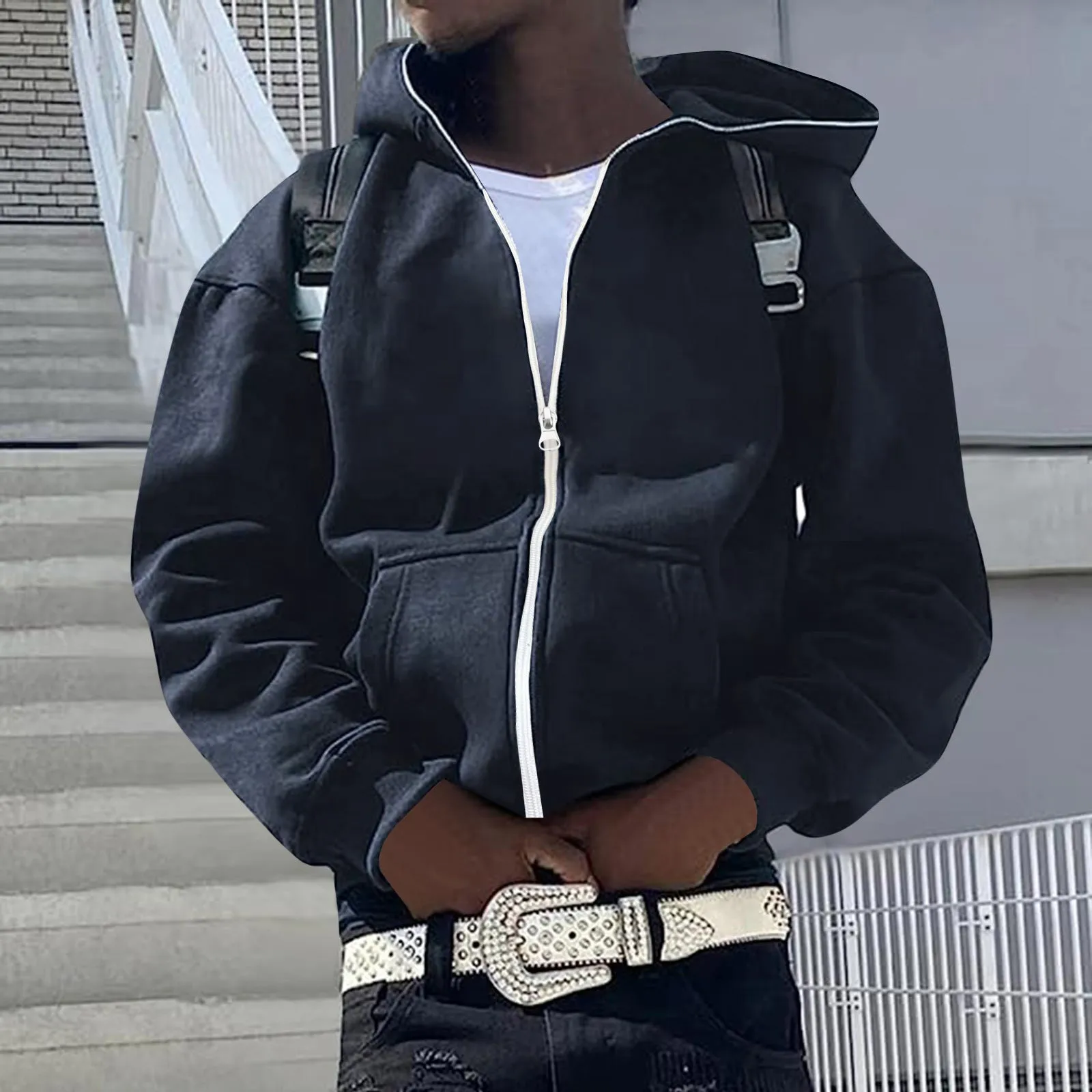 Unisex Zip Hoodies Trendy Embroidered Hip-Hop Style