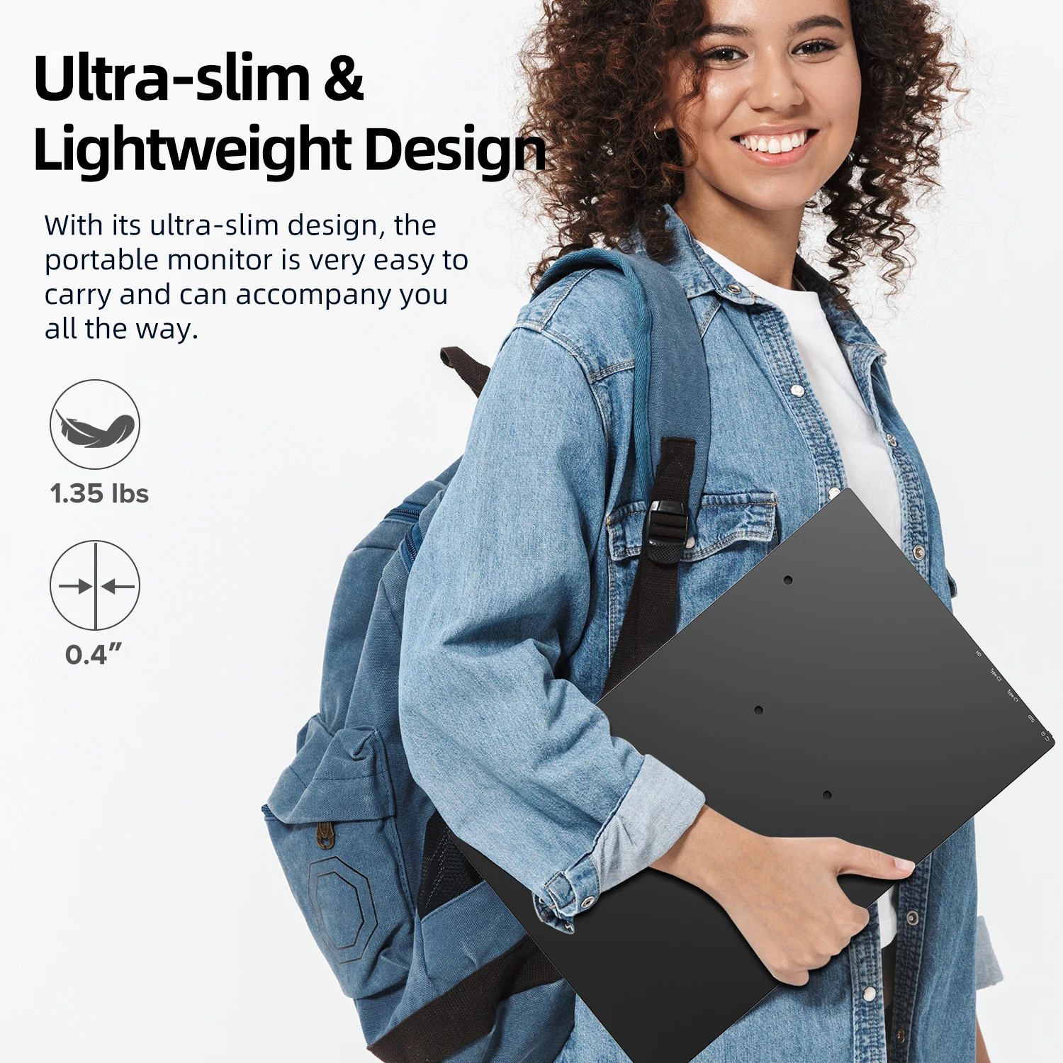 - Ultra-thin & Lightweight Travel Monitor: Weighing only 1.37 lbs and 0.2 inches slim, this is the perfect portable monitor for work and entertainment on the go. Connect to your gaming device and enjoy gaming anytime, anywhere. The magnetic leather case that comes with the product can not only be an excellent protective cover but also be used as a stand, making the experience more convenient.