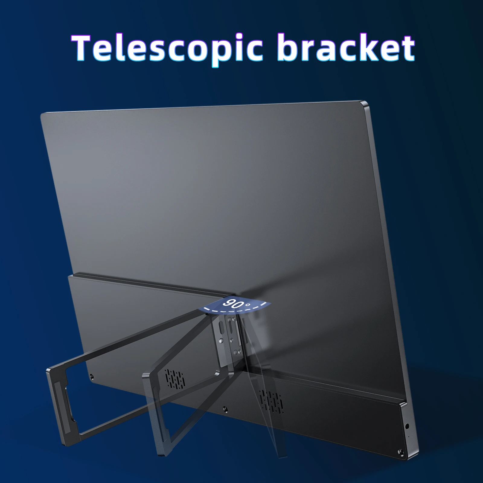 - Retractable Stand and Cable Connection: The back of the unit includes a retractable stand for a simple, quick setup. Adjust the viewing angle freely from 0° to 90°. Note: This product does not come with a protective cover. If compatible with DP ALT MODE, connect via the included Type-C to Type-C cable for video, audio, and power transfer with a single cable. For additional power, use the included USB adapter to prevent the device from draining power during extended use.