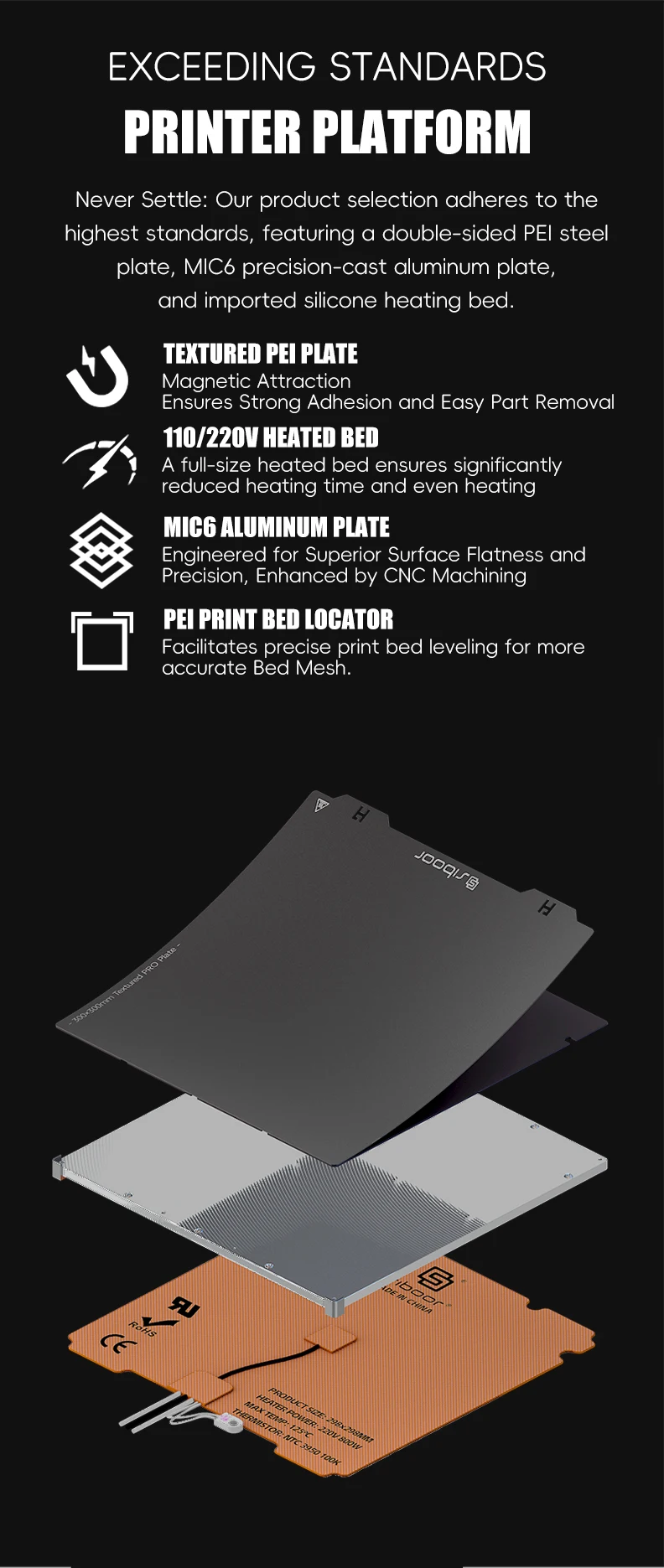 MIC6 Aluminum Platform: Features a black matte PRO print surface for superior build quality.