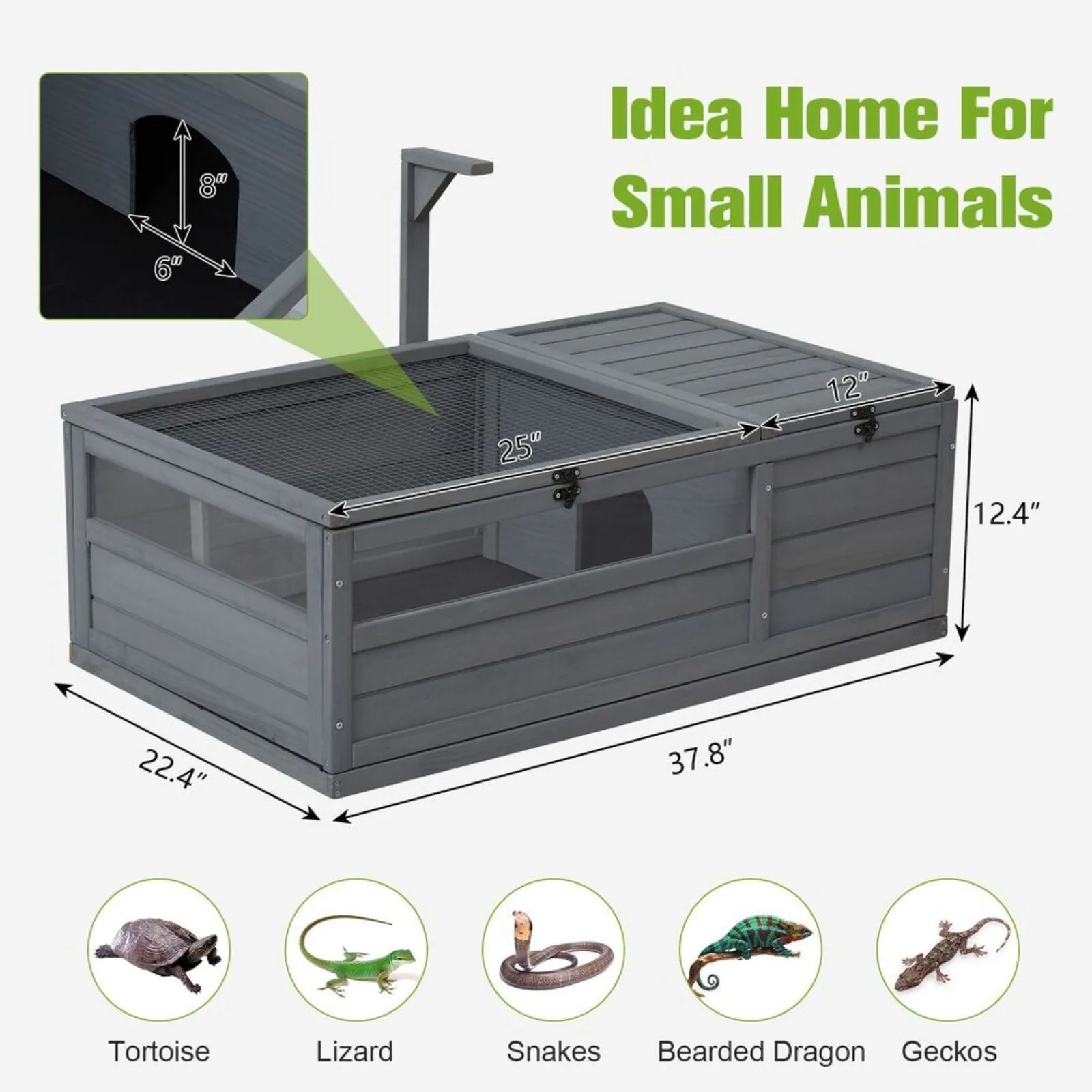 This quality tortoise house habitat provides a special sleeping area and exercise place for your pets. It features a large observation window, enabling your pets to keep an eye on the surroundings, while the iron wire grid construction ensures your pets get enough fresh air.