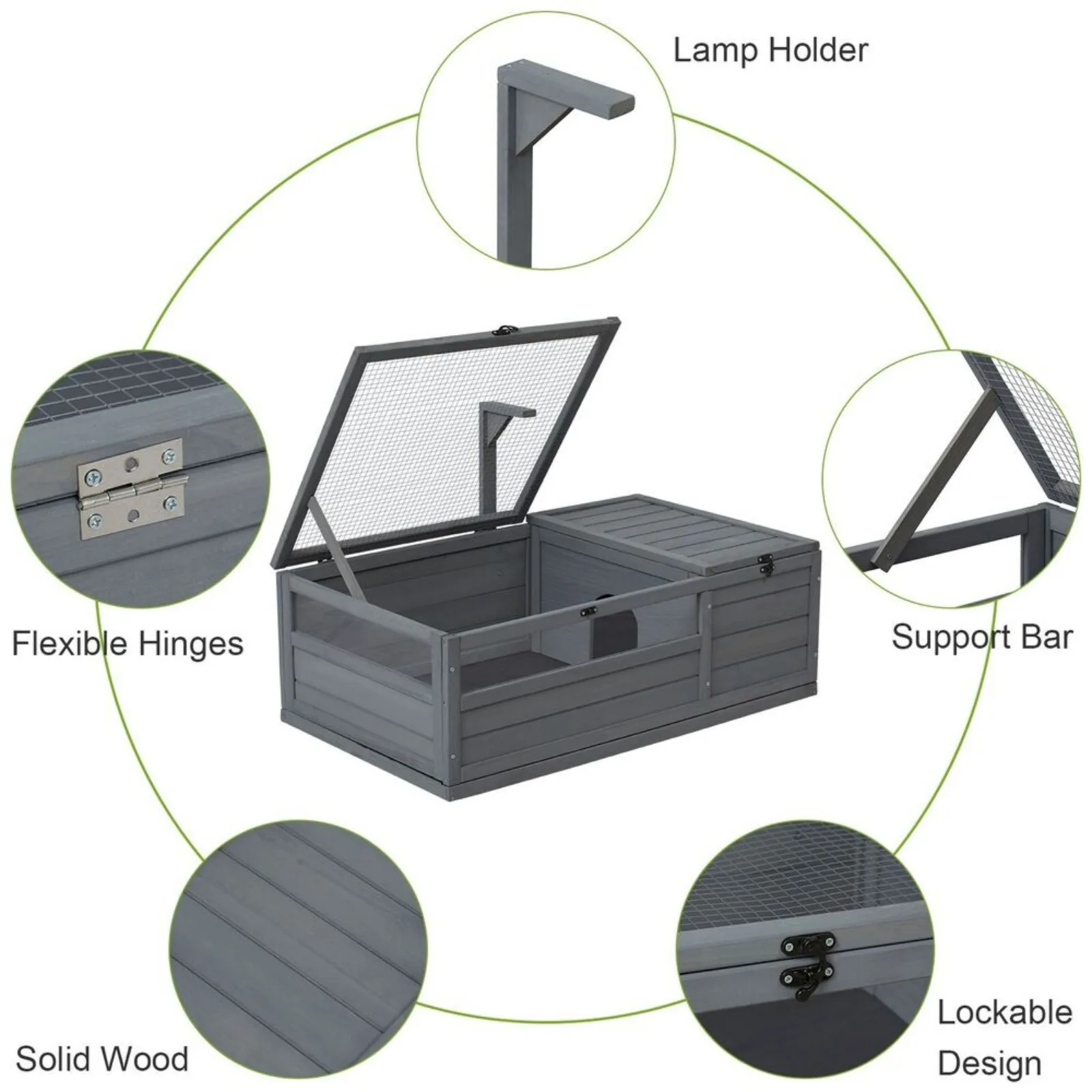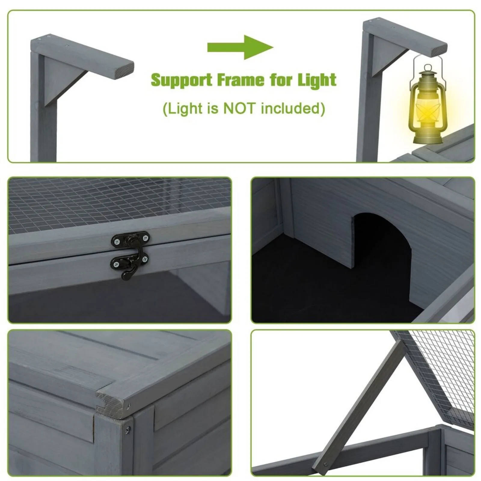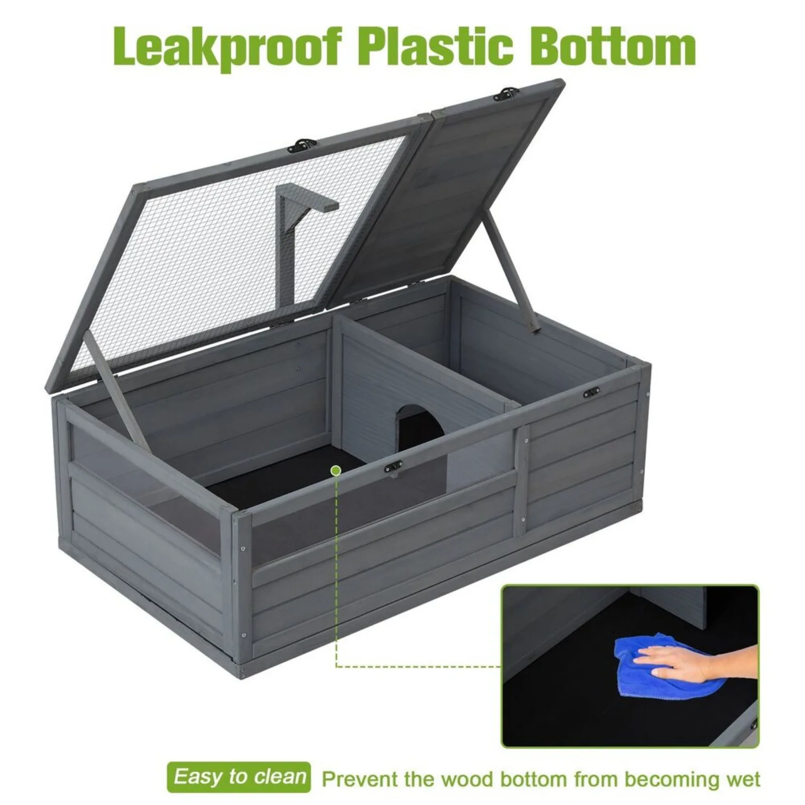 - Lockable Door for Easy Access: The large tortoise house is equipped with lockable latches to prevent your reptile from escaping while enjoying the sun. Meanwhile, it helps you conveniently access and clean the interior space. The waterproof bottom makes it easy to remove the pet’s droppings.